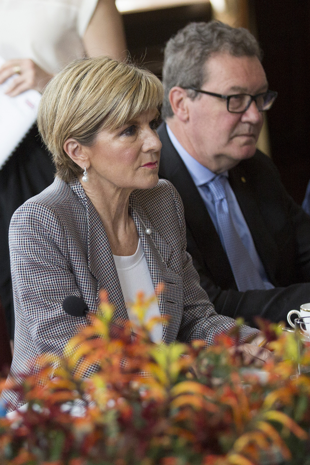 Foreign Minister Julie Bishop and Australian High Commissioner Alexander Downer at the Australian-UK Ministerial Meeting (AUKMIN) in London, Sep-tember 2016. Photo credit: Jim Ross