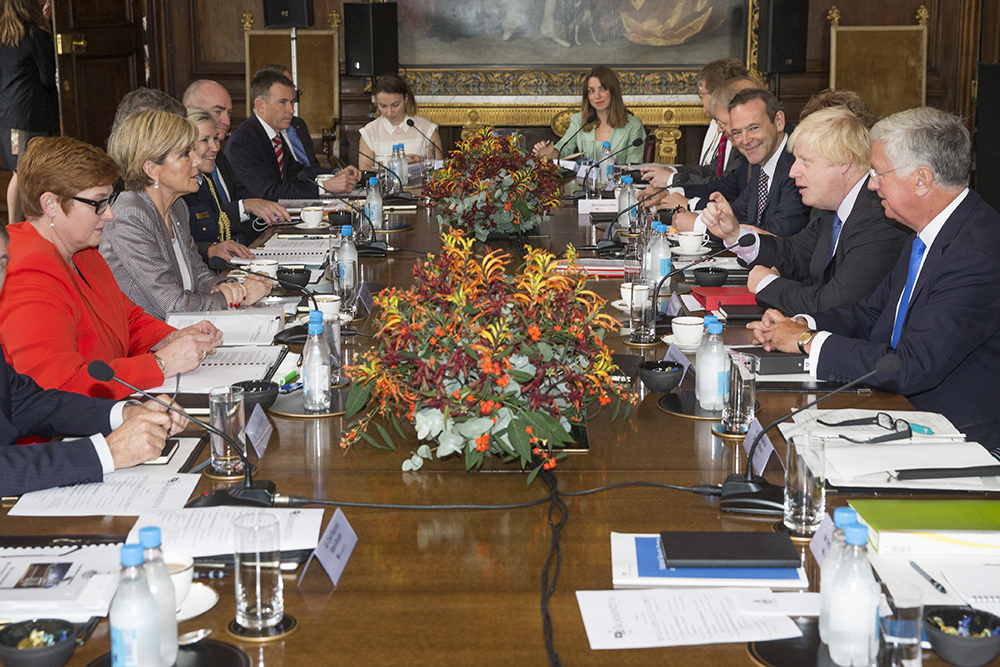 Australian and UK Foreign and Defence Ministers and officials meet in London for the annual ministerial meeting, AUKMIN, September 2016. Photo credit: Jim Ross
