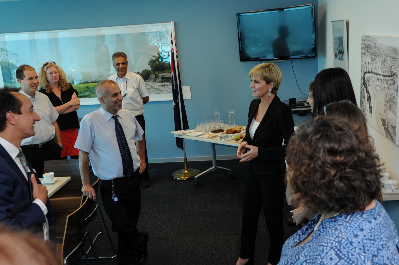 Foreign Minister Julie Bishop meets with Australian Embassy staff in Tel Aviv. [Photo: Jorge Novominsky]