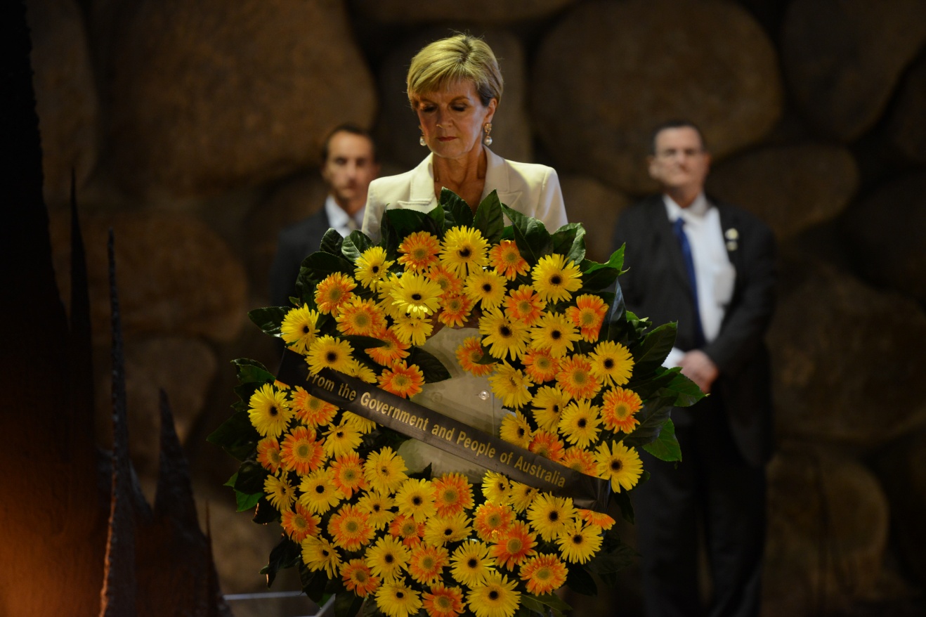 Foreign Minister Bishop lays a wreath at the Yad Vashem Holocaust Memorial, Jerusalem. [Photo: Jorge Novominsky]