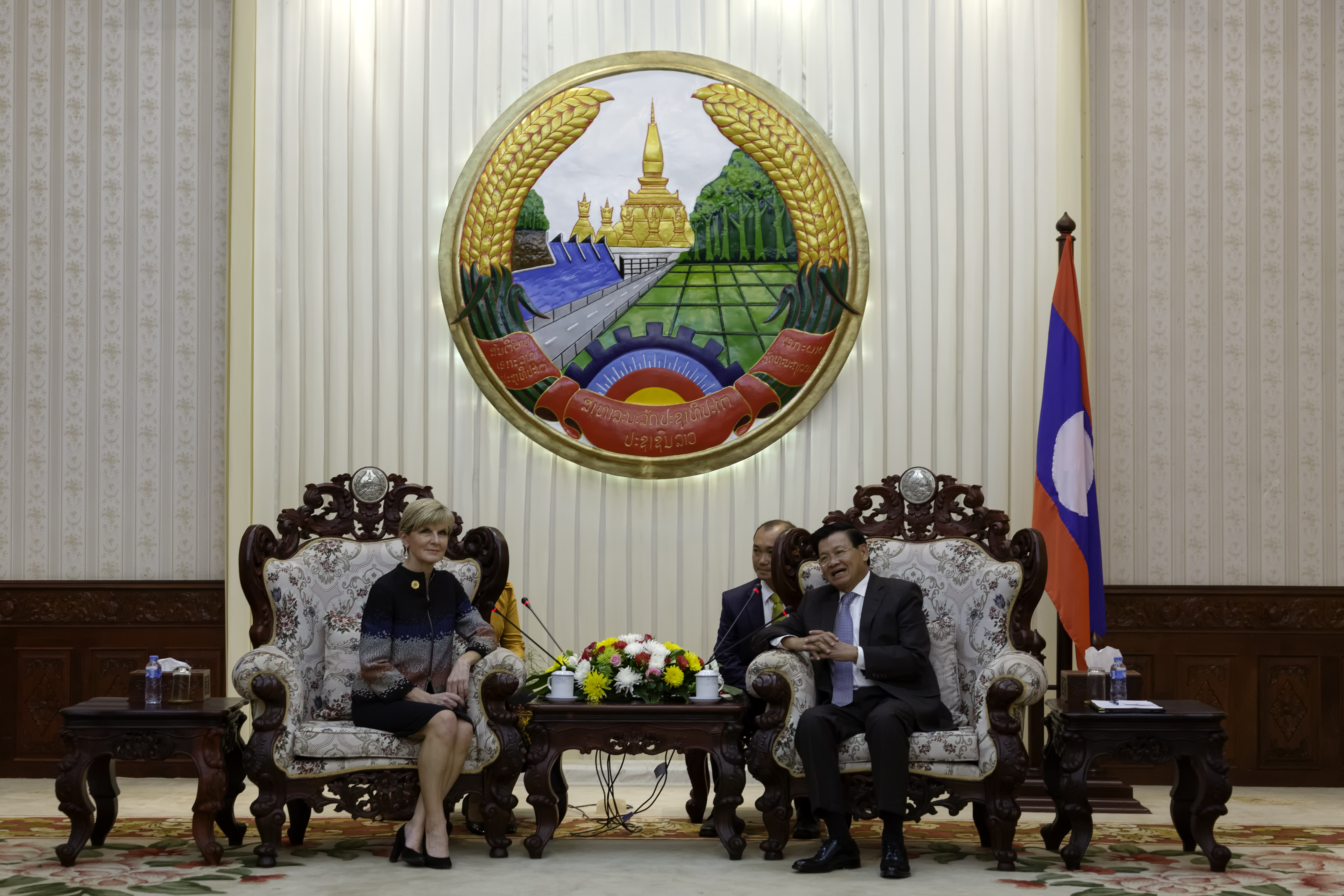 Foreign Minister Julie Bishop meets HE Dr Thongloun Sisoulith, Prime Minister of Lao PDR, in Vientiane, Laos. 25 July 2016. Photo credit: DFAT/Bart Verweij