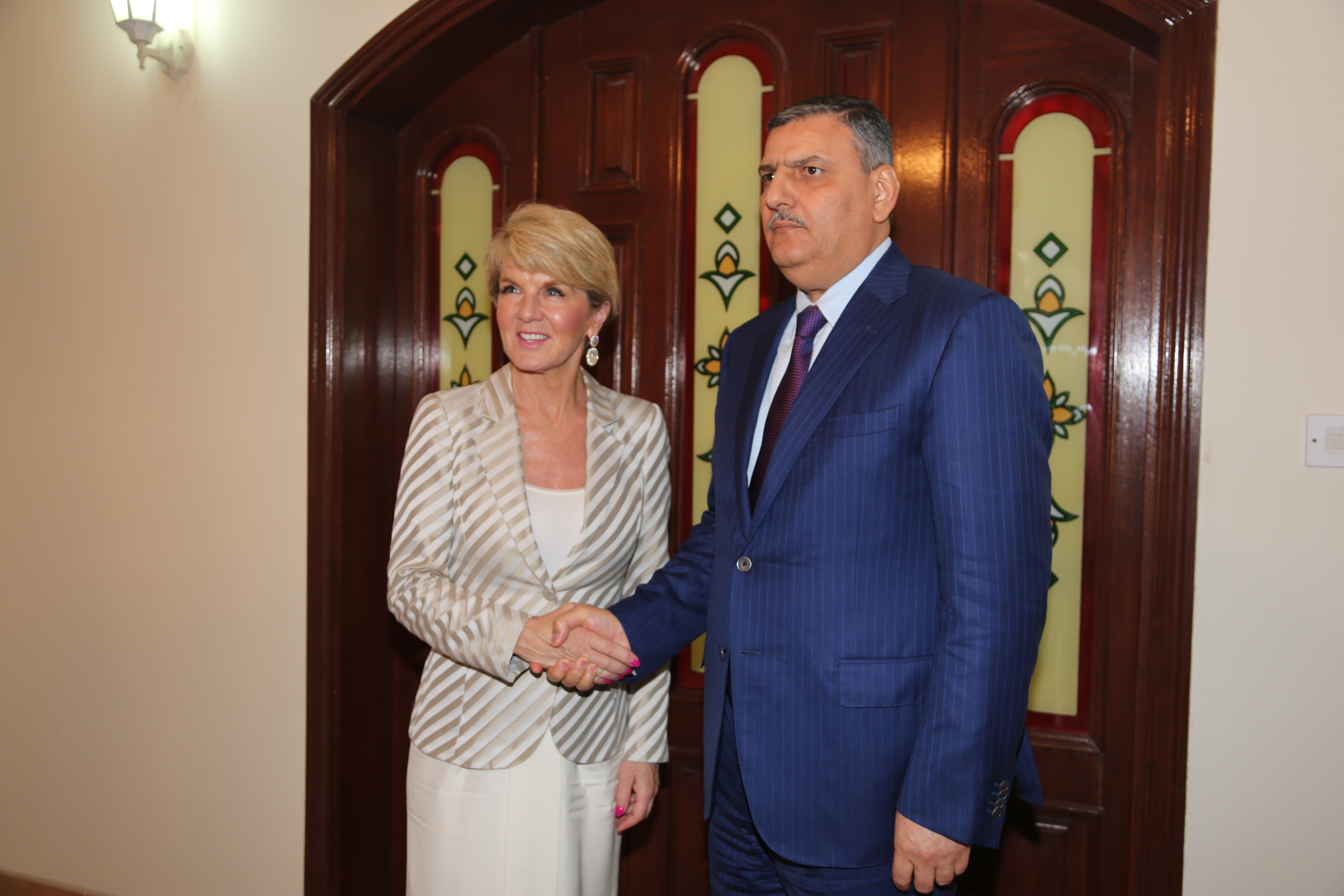 Foreign Minister Julie Bishop meets with Dr Riad Hijab, General Coordinator of the Syrian High Negotiations Committee in Doha, Qatar. Credit: Mohamed Al-Shaeer