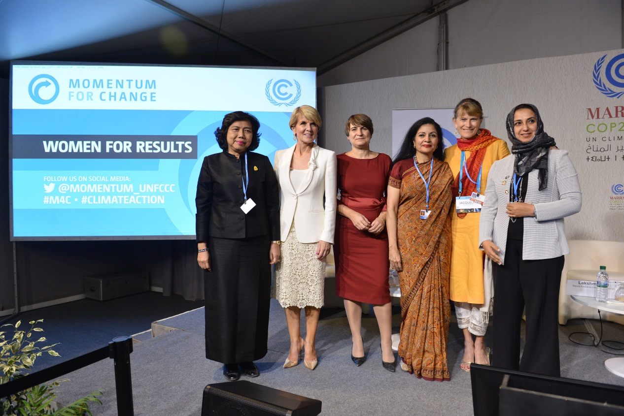 Minister Bishop and other panellists at the UNFCCC Momentum for Change: Women for Results event at COP22 in Marrakech on 15 November 2016. Credit: DFAT/Khalid Maltoufi.