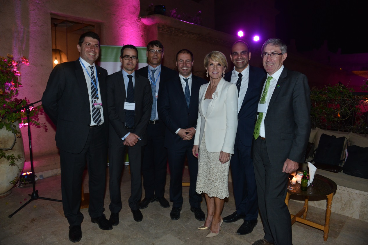 Minister Bishop with Minister Frydenberg and other guests at the Australian stakeholders event hosted by the Carbon Markets Institute during COP22 in Marrakech on 15 November 2016. Credit: DFAT/Khalid Maltoufi.