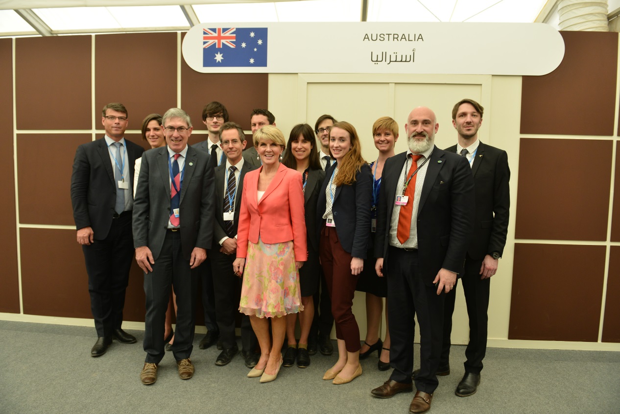 Minister Bishop and members of the Australian delegation at COP22 in Marrakech on 16 November 2016. Credit: DFAT/Khalid Maltoufi.
