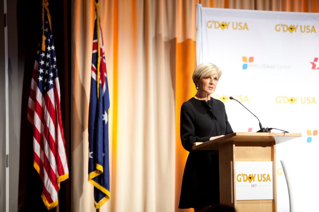 Foreign Minister Julie Bishop delivers the keynote address at the G’Day USA US-Australia Dialogue on Cooperation in the Indo-Pacific on January 26 in Los Angeles. Photo by Jerick Dizon