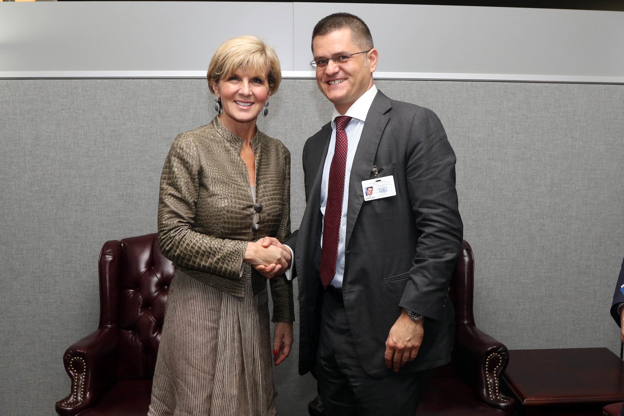 Foreign Minister Julie Bishop meets former Serbian Minister for Foreign Affairs Mr Vuk Jeremić in New York on 19 September 2016. Photo credit : Trevor Collens