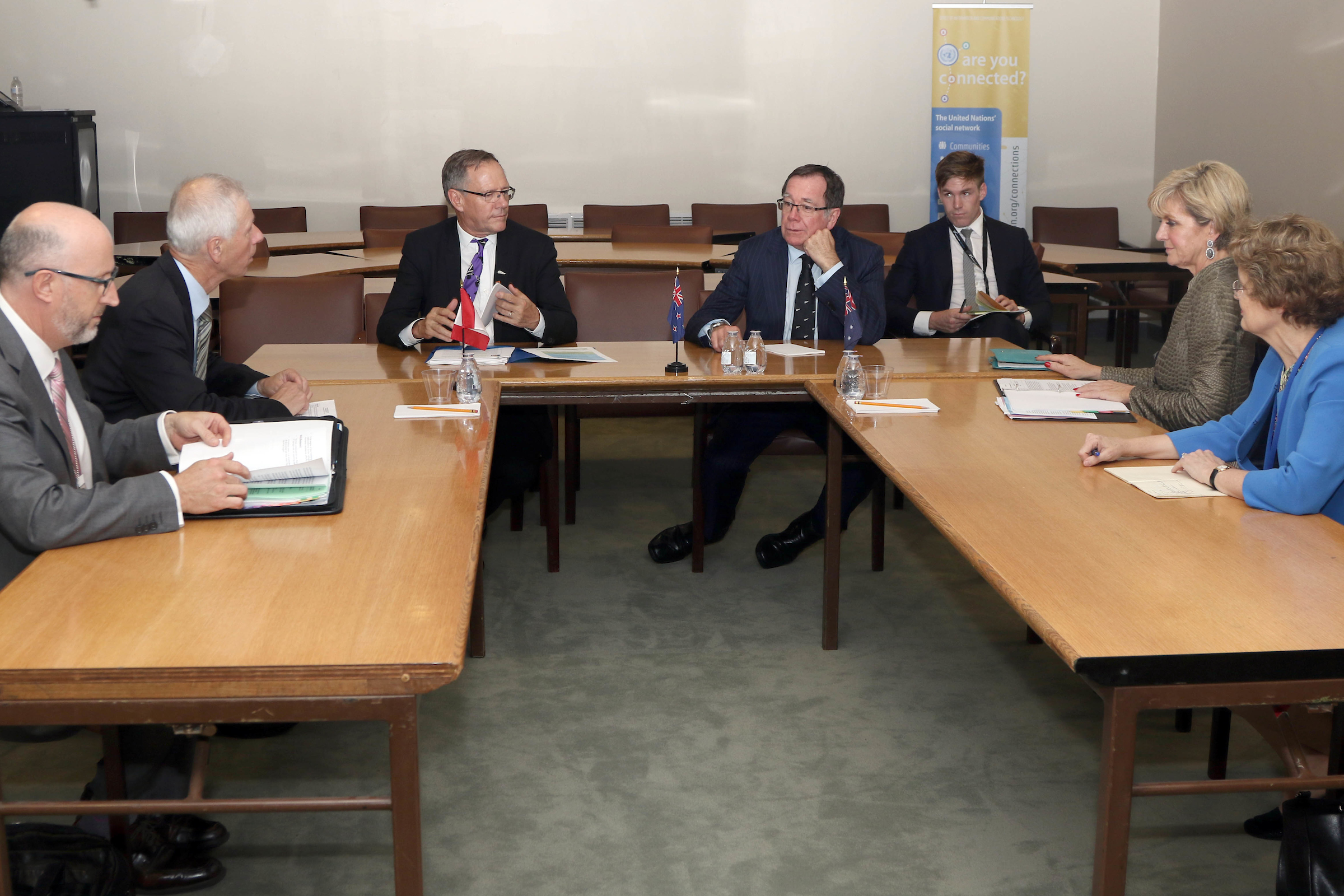 Foreign Minister Julie Bishop attends the Canada, Australia and New Zealand (CANZ) Foreign Ministers’ Meeting with Mr Stéphane Dion (second from left), Minister of Foreign Affairs of Canada, and Mr Murray McCully (fourth from right), Minister of Foreign Affairs of New Zealand, in New York on 19 September 2016.