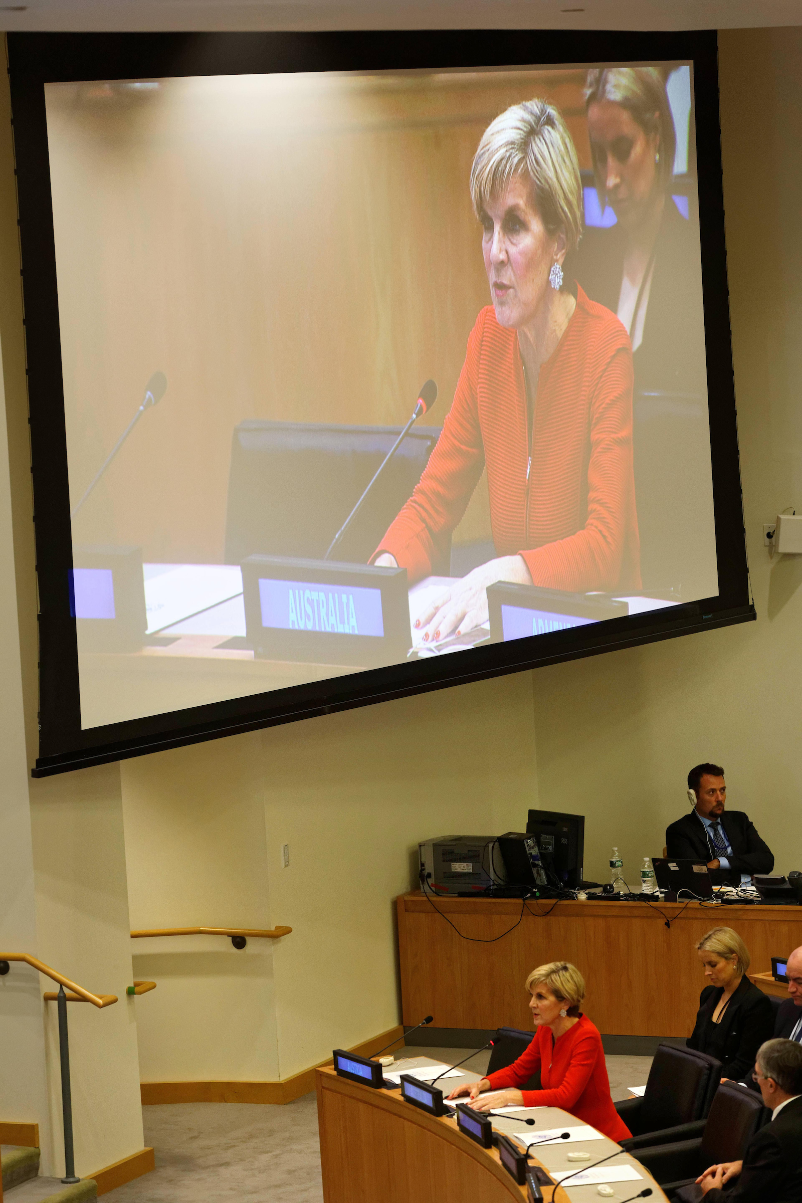 Foreign Minister Julie Bishop speaks at the Peacebuilding Fund Pledging Conference at the UN Headquarters in New York on 21 September 2016. Photo credit: Trevor Collens