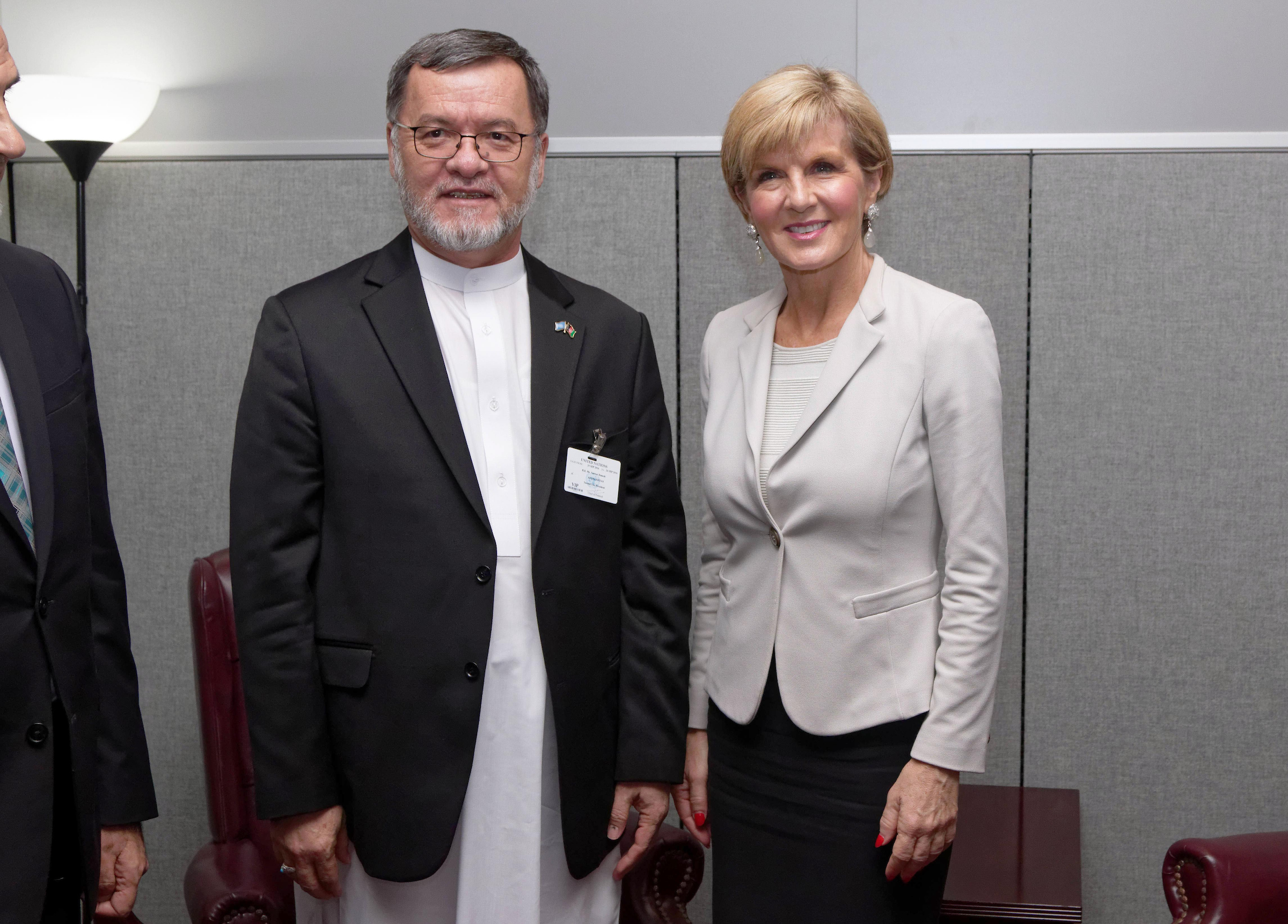 Foreign Minister Julie Bishop meets Mr Sarwar Danish, Second Vice President of Afghanistan, in New York on 22 September 2016. Photo credit : Trevor Collens