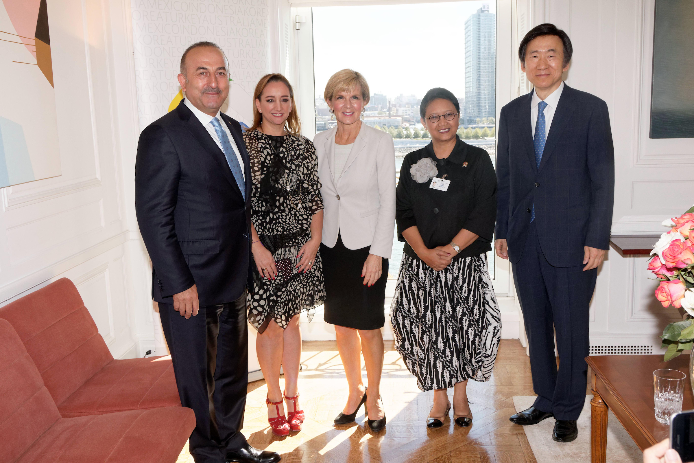 Foreign Minister Julie Bishop with (from left) Mr Mevlüt Çavuşoğlu, Minister of Foreign Affairs of Turkey; Ms Claudia Ruiz Massieu, Secretary of Foreign Affairs of Mexico; Ms Retno Marsudi, Minister of Foreign Affairs of Indonesia; and Mr Yung Byung-se, Minister of Foreign Affairs of Korea; at the MIKTA Ministerial Meeting in New York on 22 September 2016. Photo credit : Trevor Collens