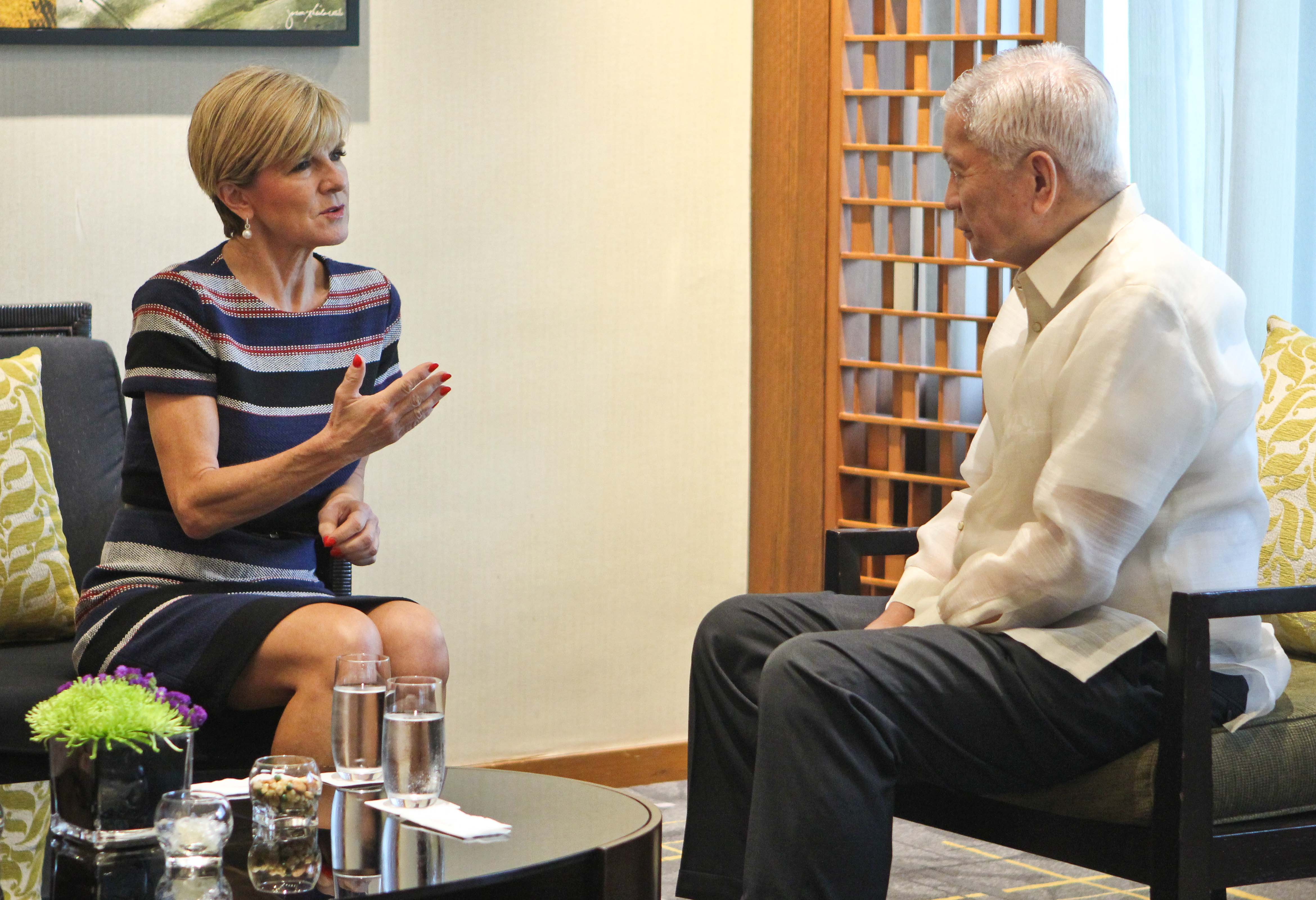 Foreign Minister Julie Bishop meets with former Philippines Foreign Affairs Secretary Albert del Rosario ahead of the ADR Institute lunch forum on “Change and Uncertainty in the Indo-Pacific – Strategic challenges and opportunities for Australia and the Philippines” in Manila, 16 March 2017. Photo credit: DFAT/Stephanie Tumampos