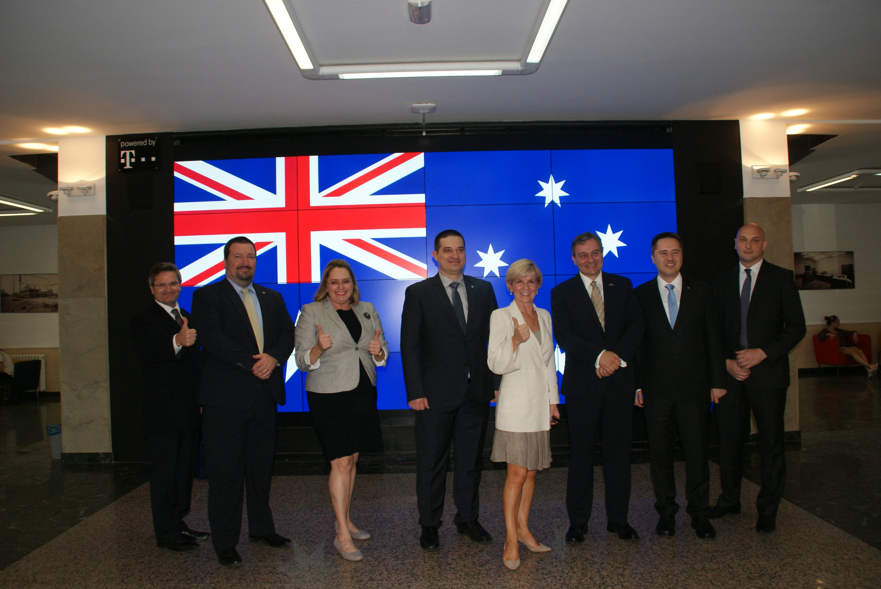 Foreign Minister Julie Bishop at the Zagreb University Faculty of Electrical Engineering and Computing with (from left to right): Deputy Head of Mission at the Australian Embassy John Read, Vice Dean Mario Vrazic, Australia’s Ambassador to Croatia HE Elizabeth Petrovic, Vice Dean Marko Delimar, Minister Bishop, Croatia’s Ambassador to Australia HE Damir Kusen, the Dean Mislav Grgic, and the Vice Dean Gordan Gledec, at the STEM event. Zagreb, 10 July 2017.