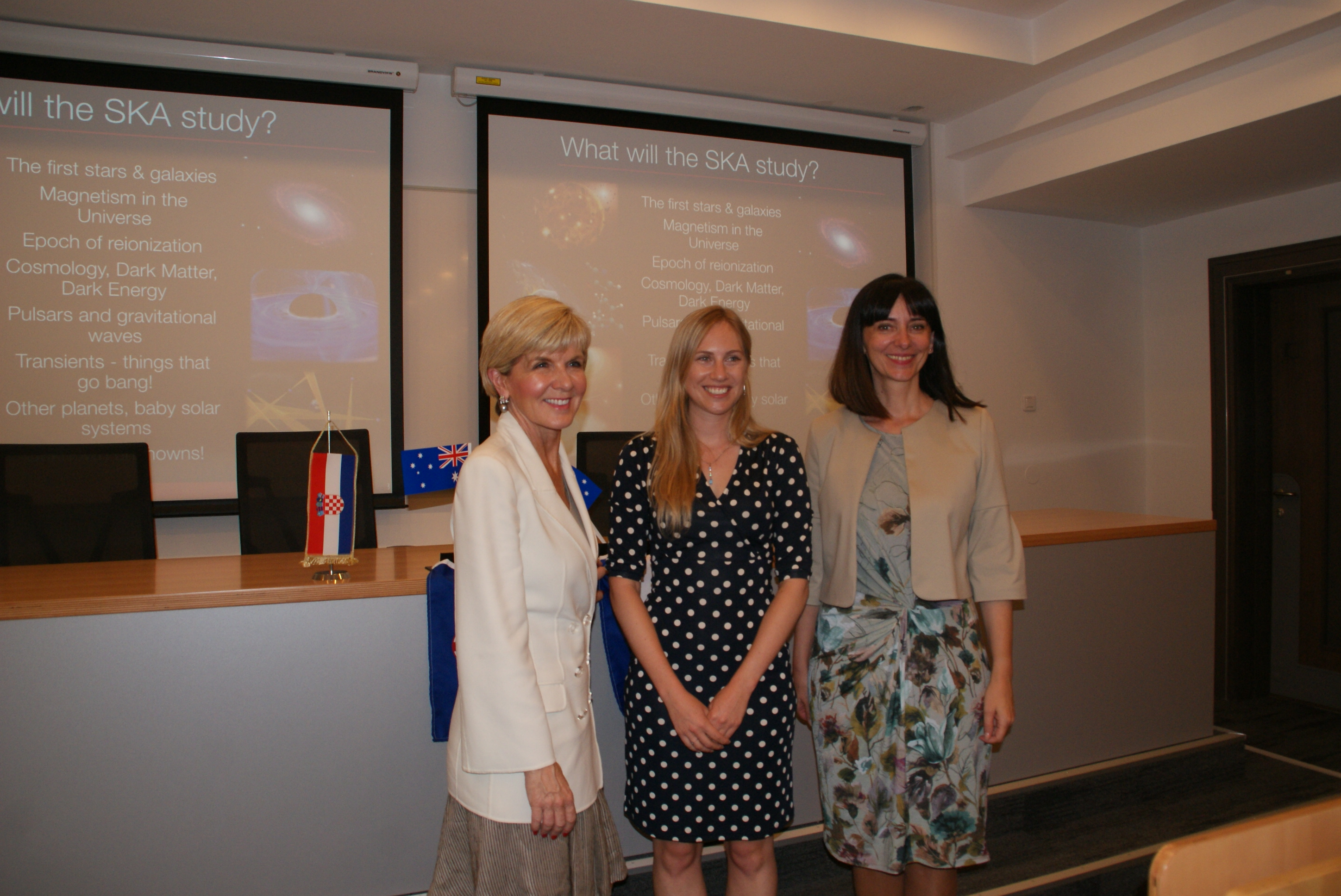 Foreign Minister Bishop with Dr Jacinta Delhaize Post Doctoral Fellow at Zagreb University from Western Australia and Croatia’s Minister for Science and Education, HE Blazenka Divjak, at the WiSTEM (Women in STEM) event.