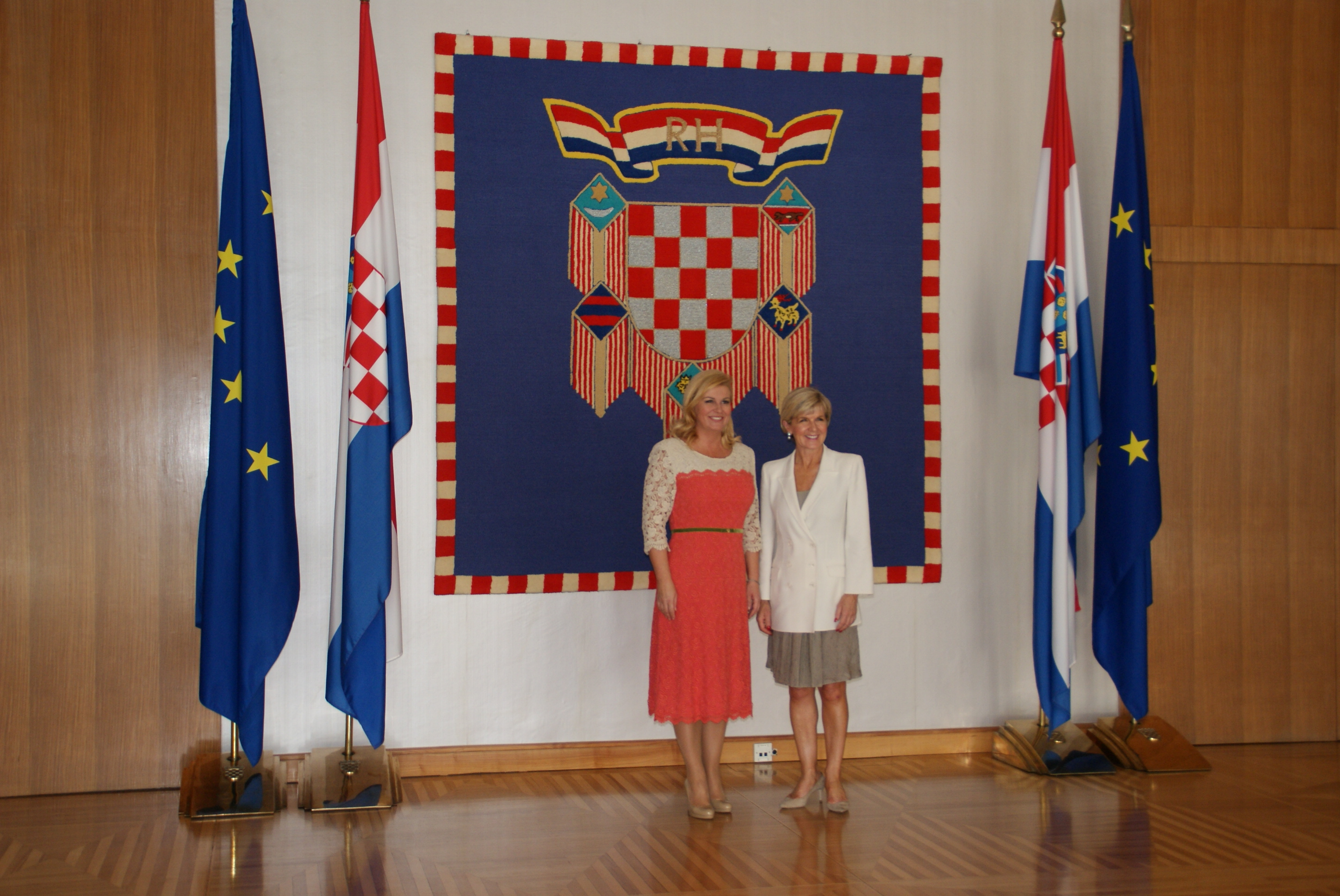 Foreign Minister Julie Bishop and the President of the Republic of Croatia, HE Kolinda Grabar-Kitarovic at the Presidential palace prior to the official meeting, Zagreb, 10 July 2017.