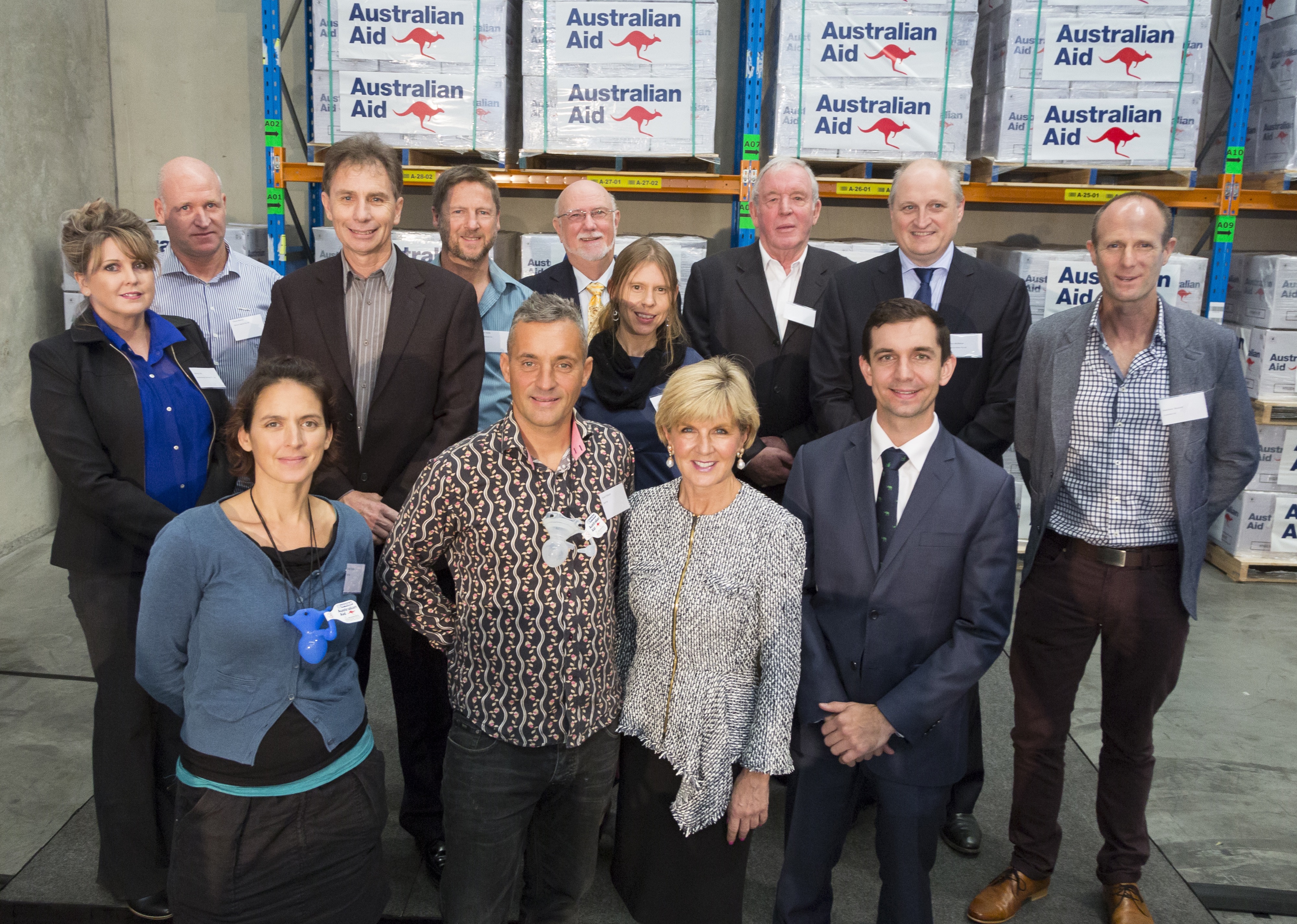 Foreign Minister Julie Bishop with Trevor Evans MP, Federal Member for Brisbane and winners of the Humanitarian Supply Challenge at the Australian Government’s humanitarian supplies warehouse in Brisbane. The winning supplies provide innovative solutions for access to water, temporary shelter, and energy supplies after disasters. 16 June 2017.