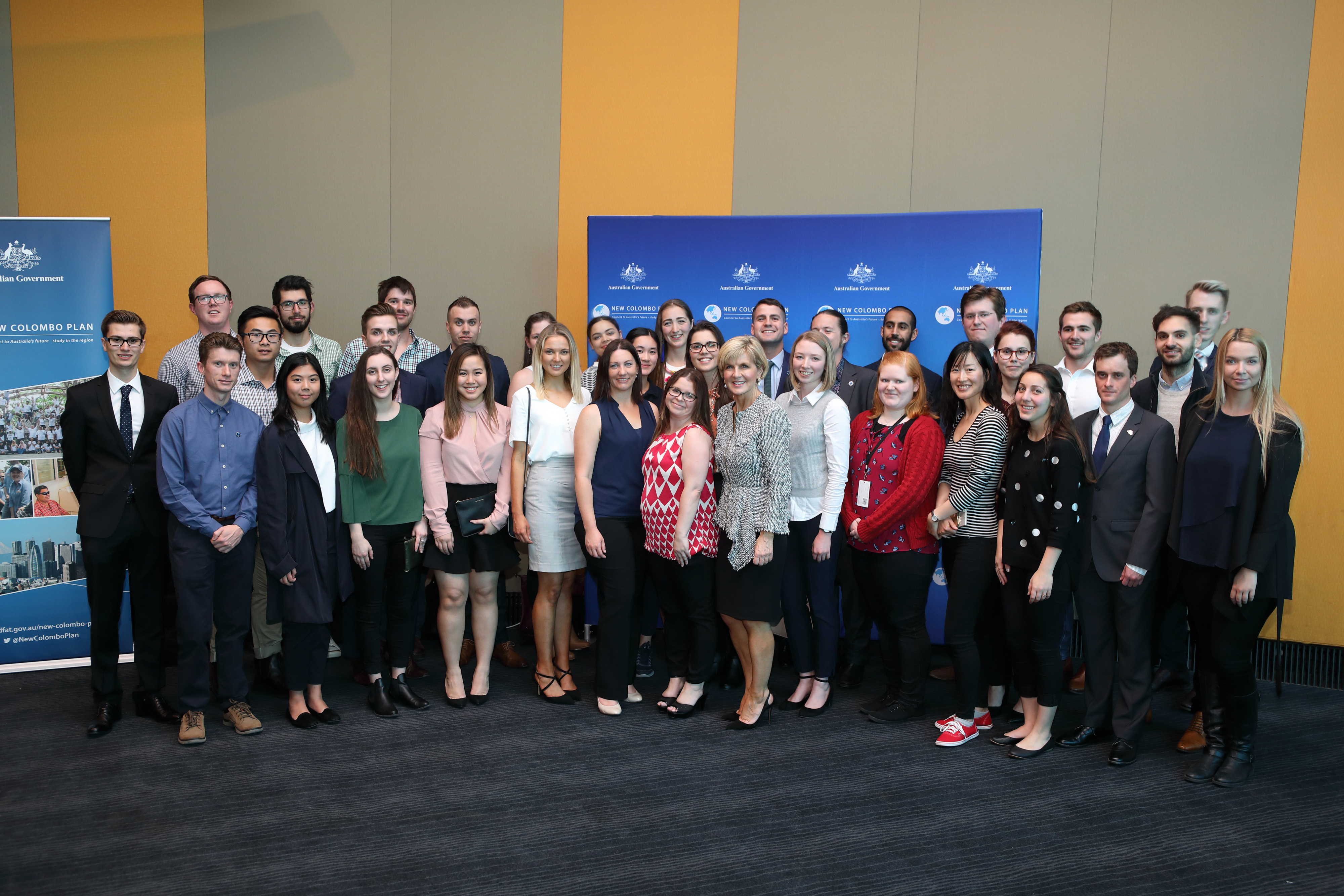 Minister for Foreign Affairs, The Hon Julie Bishop MP with New Colombo Plan Alumni from South Australian Universities. Adelaide, 6 October 2017.