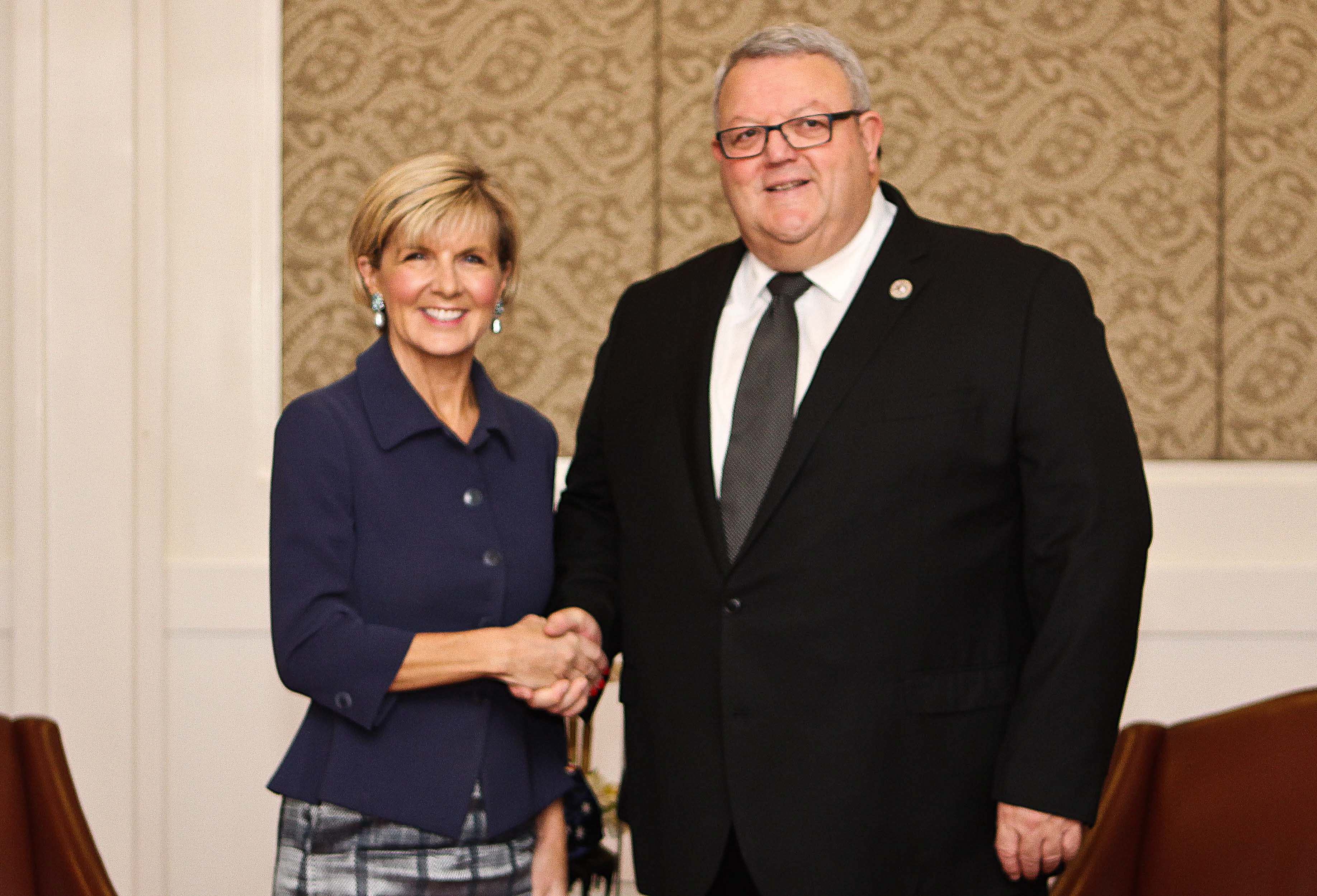Foreign Minister Julie Bishop meeting New Zealand Minister of Foreign Affairs Gerry Brownlee in Manila, 6 August 2017.