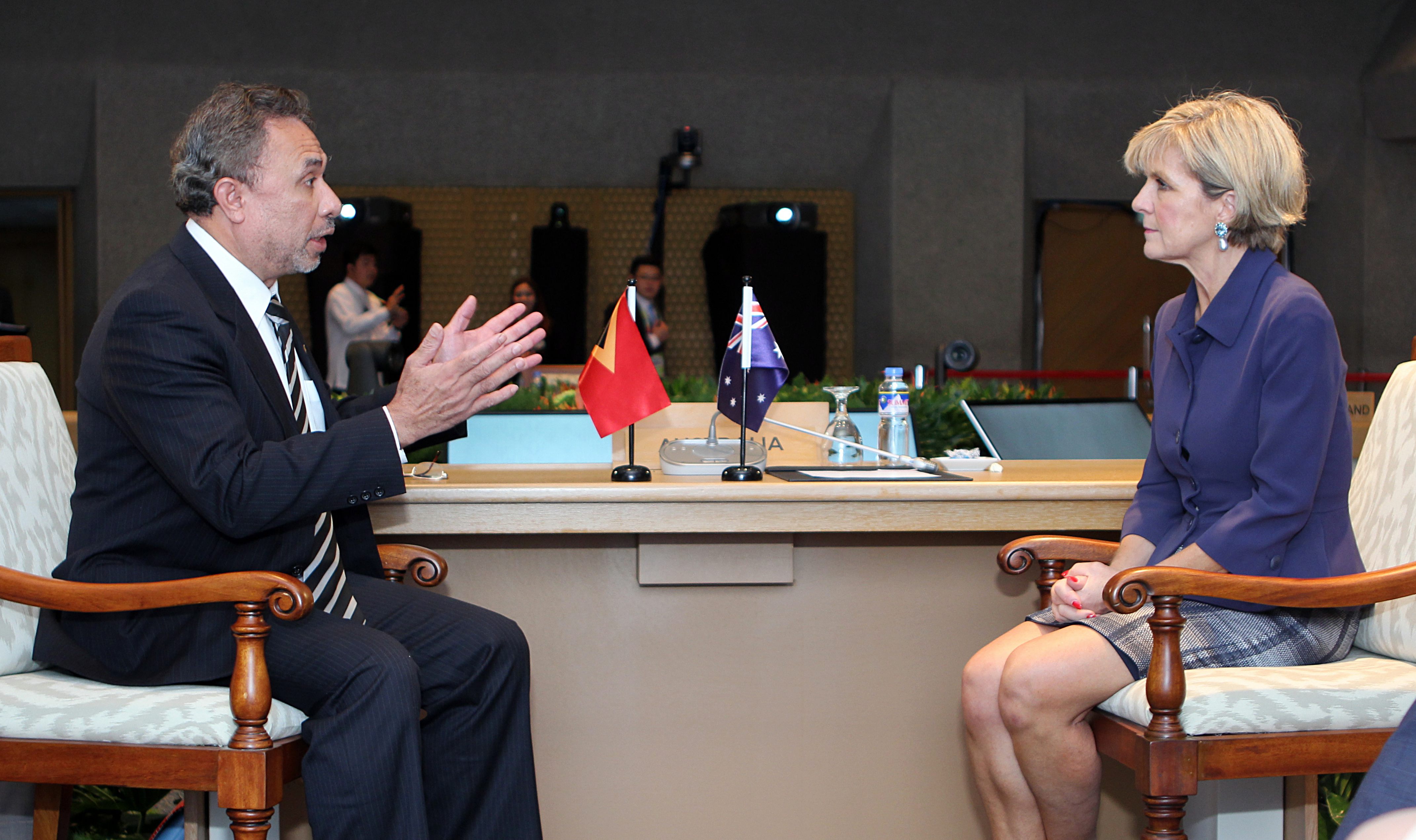 Foreign Minister Julie Bishop meeting with Timor-Leste Foreign Minister HernĂ¢ni Coelho in Manila, following the 15th South-West Pacific Dialogue Ministerial Meeting, 6 August 2017.