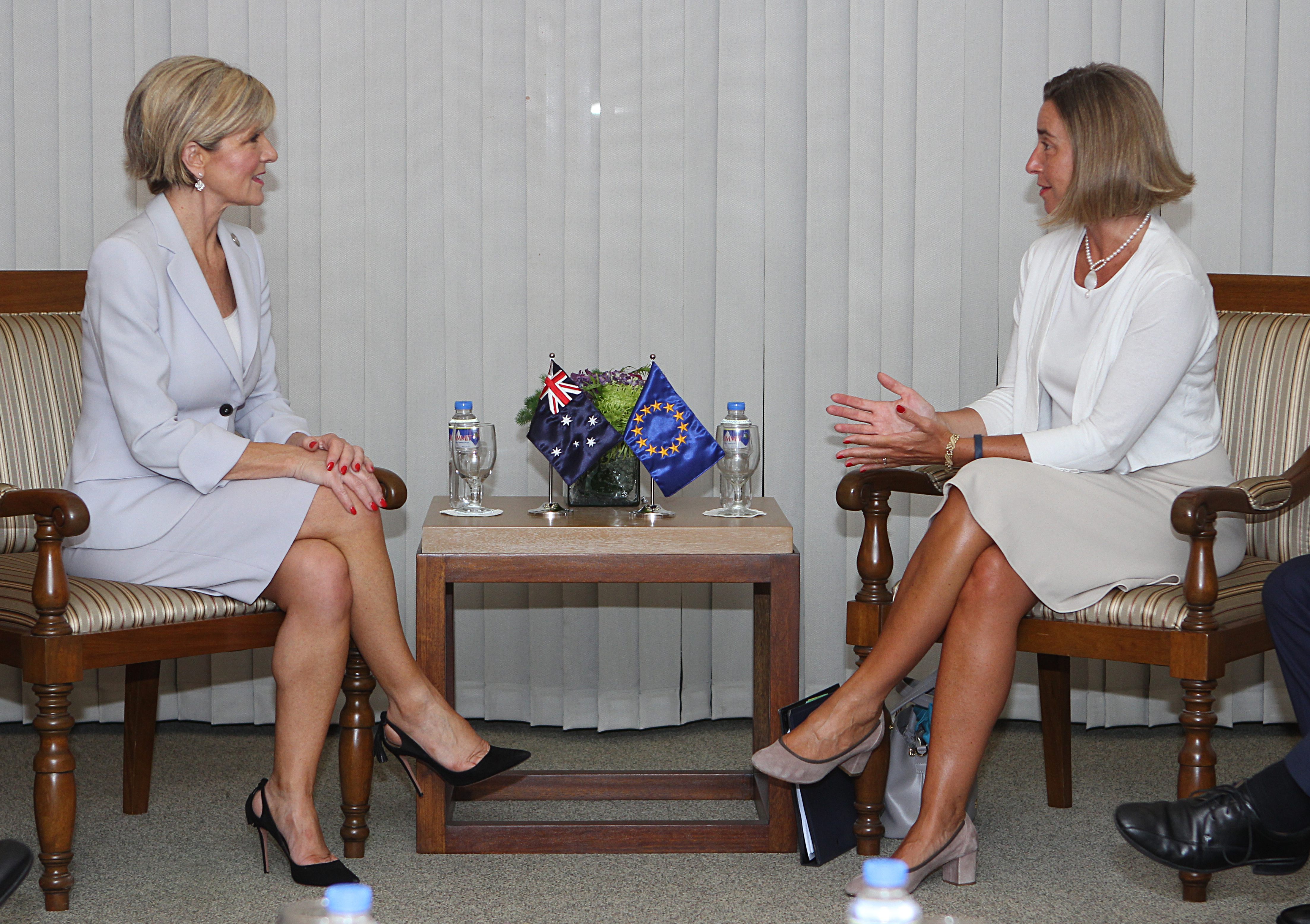 Foreign Minister Julie Bishop meeting European Union High Representative and Vice President Federica Mogherini in Manila on 7 August 2017.