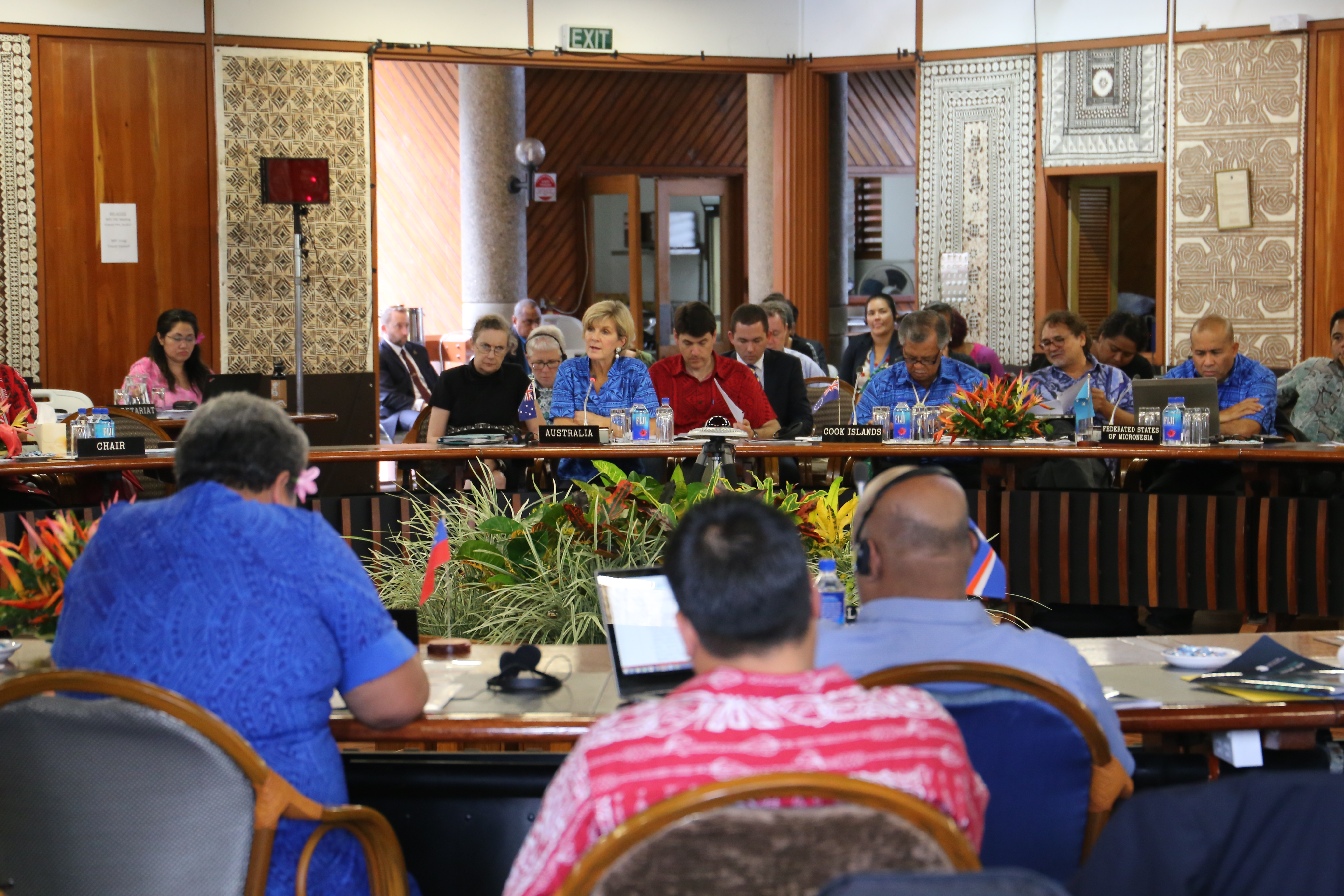 Foreign Affairs Minister Julie Bishop addresses Pacific Island leaders at the PIF Foreign Ministers’ Meeting in Suva, 11 August 2017.