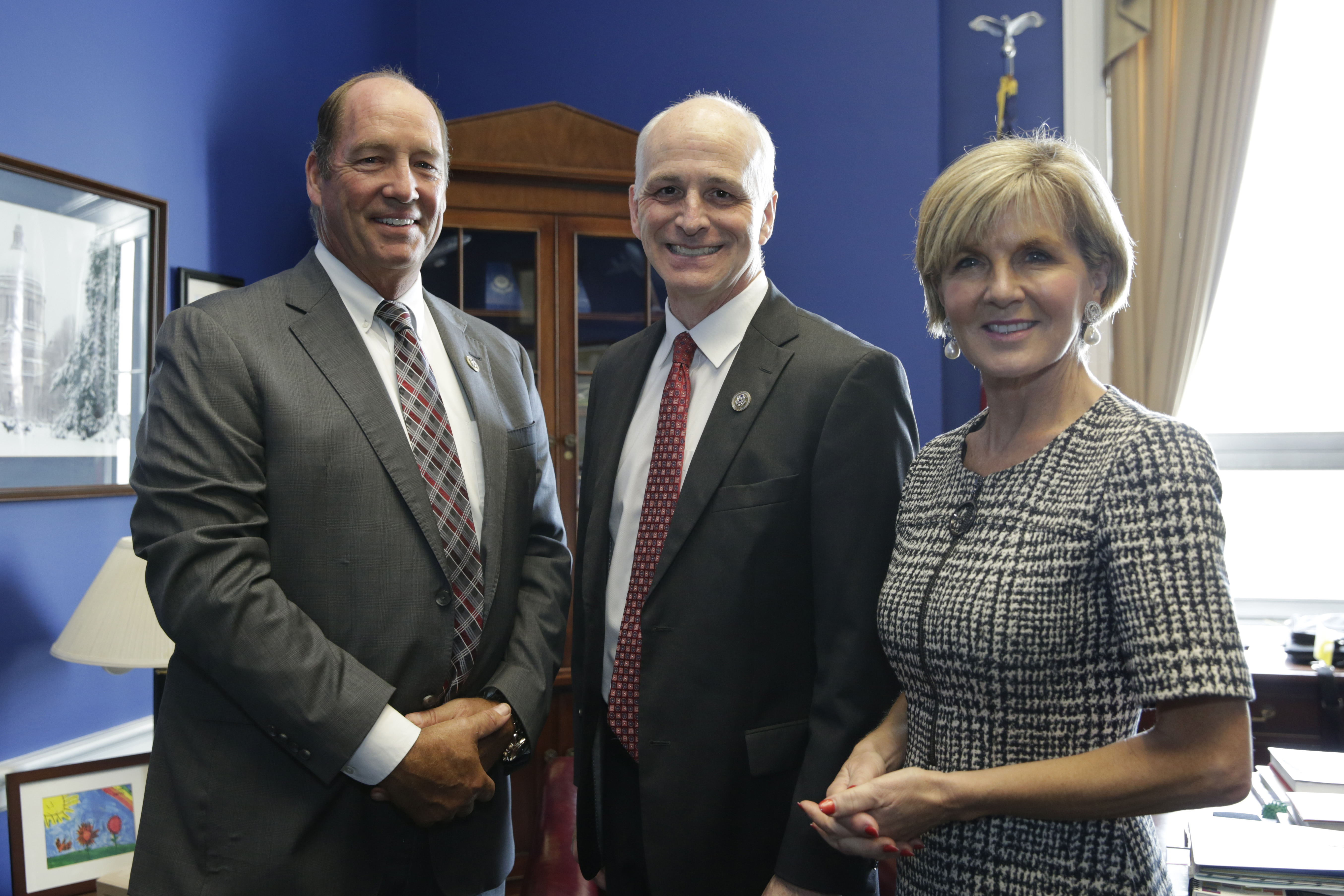 Foreign Minister Julie Bishop with Caucus for Effective Foreign Assistance House Co-Chairs, Rep Ted Yoho (R –FL) (l) and Rep Adam Smith (D-WA) on Capitol Hill, Washington DC, 26 Sept 2017.