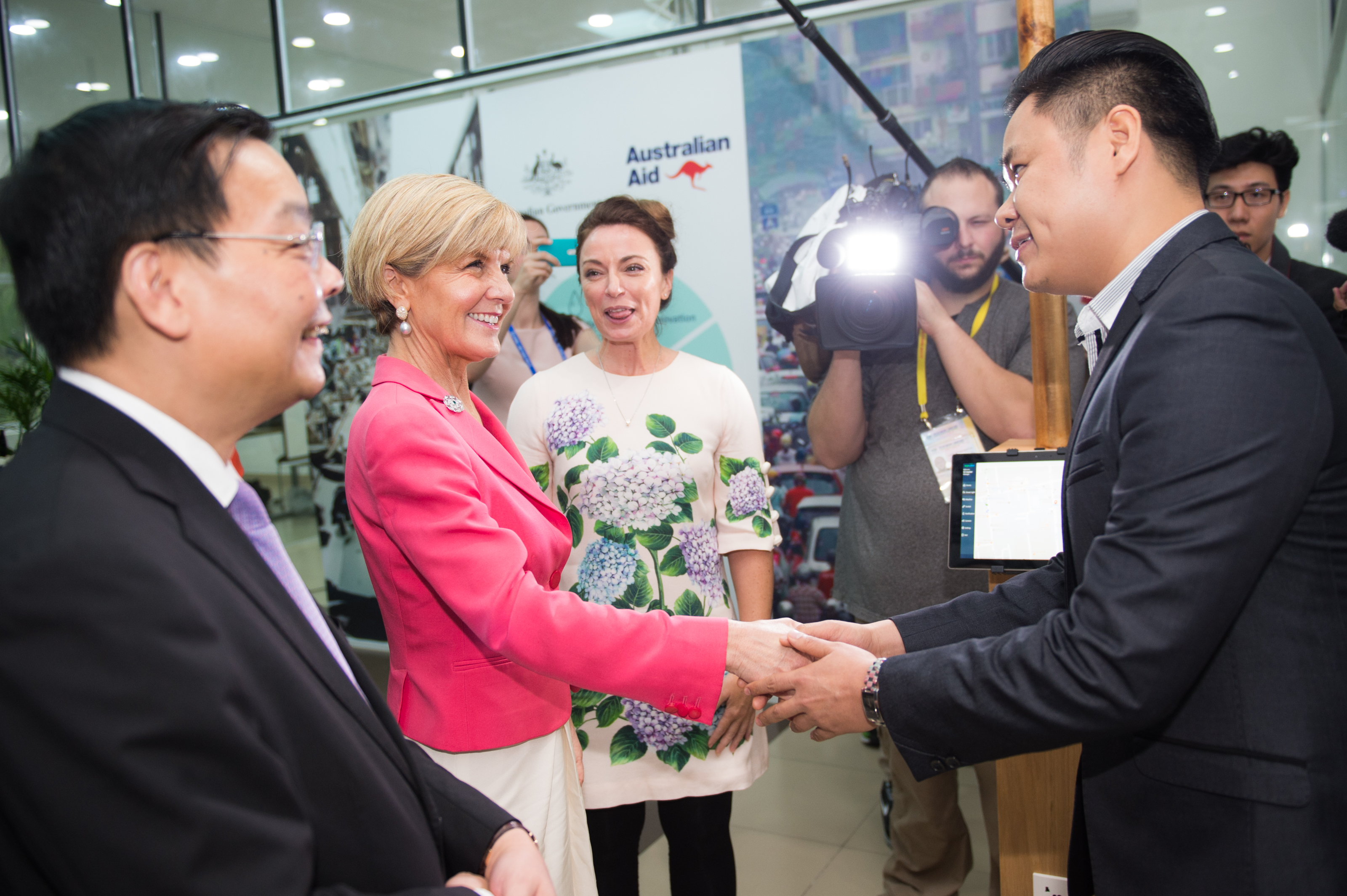 Foreign Minister Julie Bishop was greeted by Mr Hieu Phan, CEO of S3 Technology, at the Aus4Innovation launch in Da Nang, Vietnam, 8 November 2017