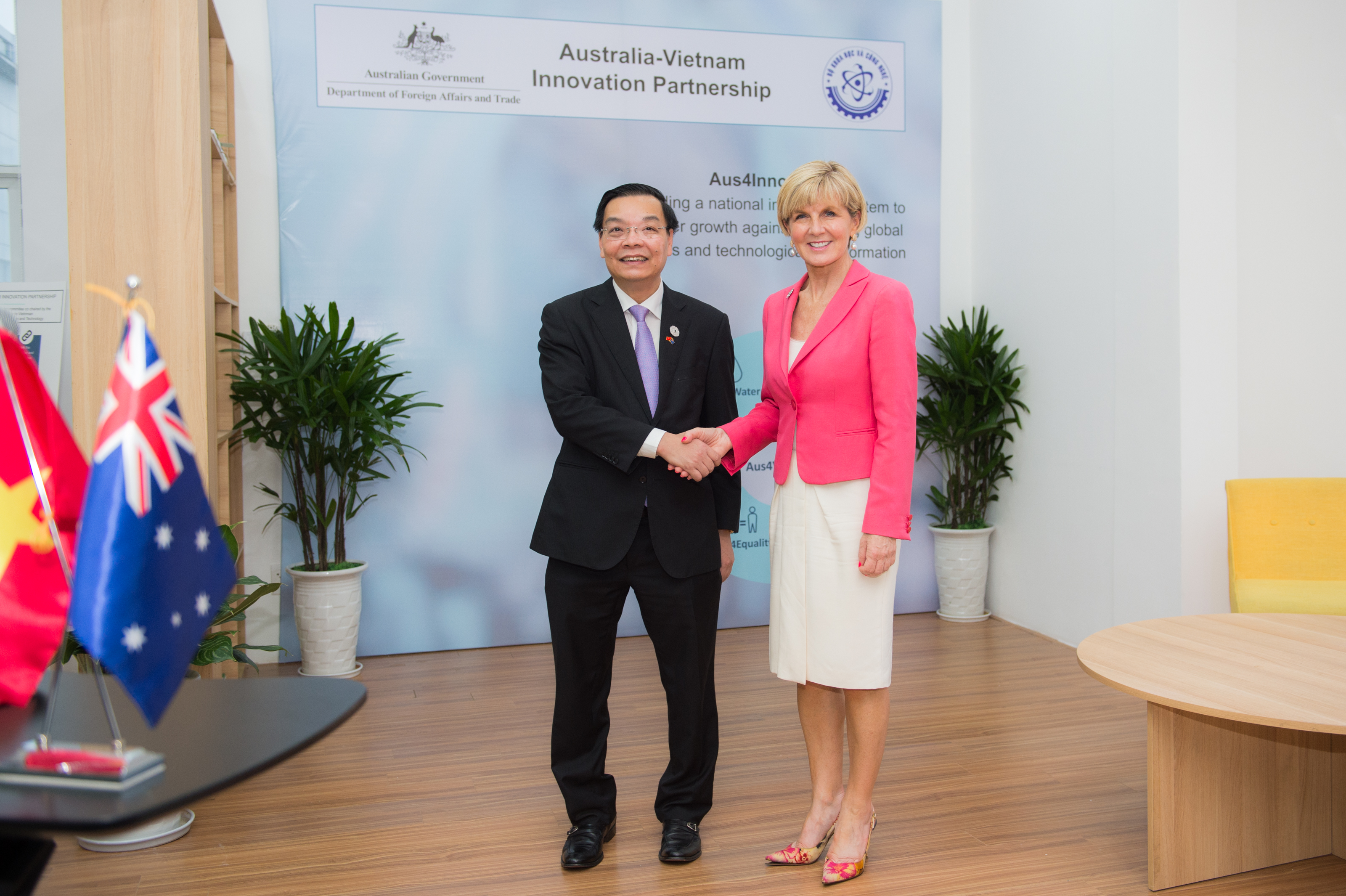 Foreign Minister Julie Bishop with H.E. Mr Chu Ngoc Anh, Vietnamese Minister of Science and Technology at the Aus4Innovation launch in Da Nang, Vietnam, 8 November 2017