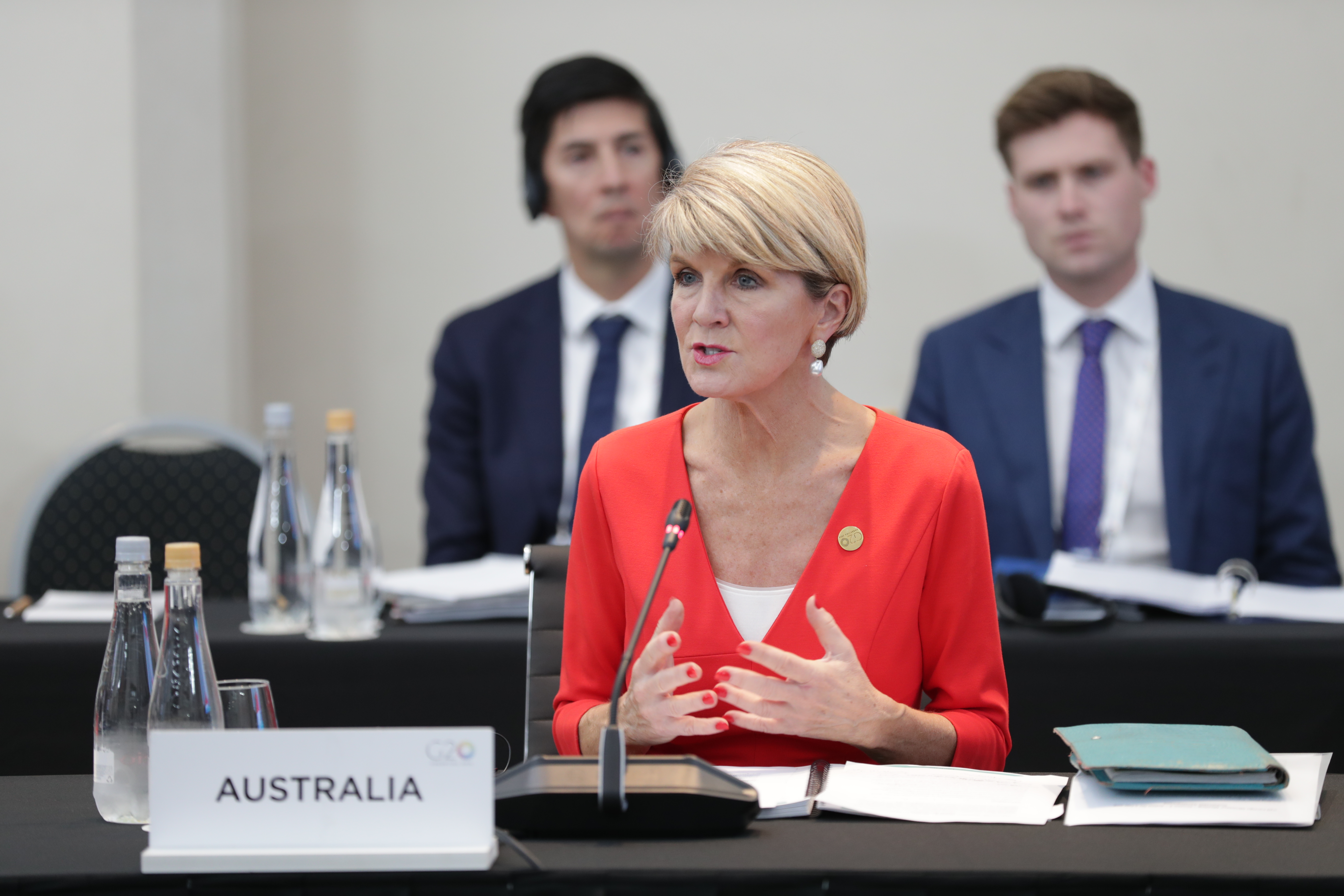 Foreign Minister Julie Bishop addresses her peer representatives during the plenary sessions of the G20 Meeting of Foreign Affairs Ministers in Buenos Aires, Argentina.