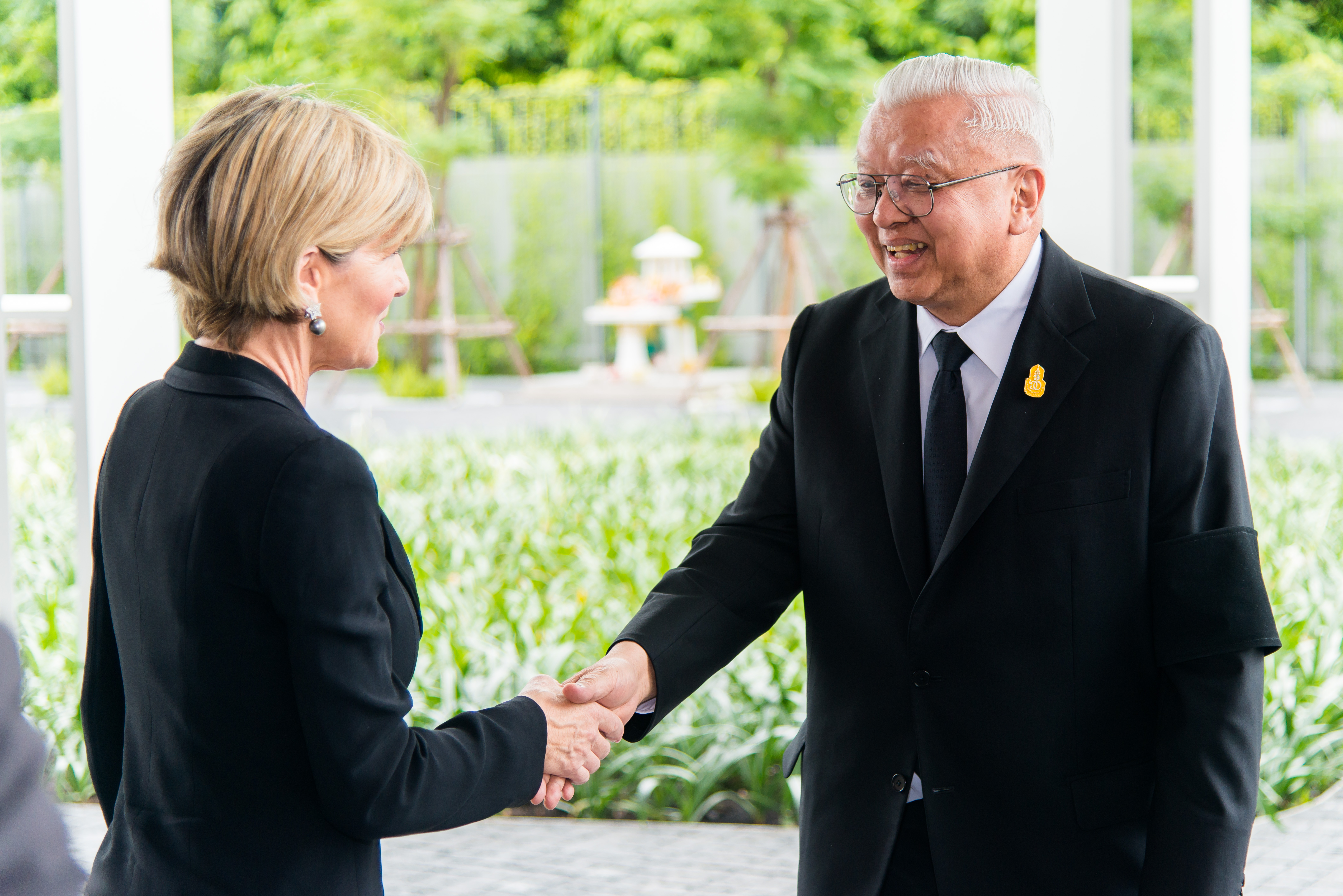 Foreign Minister Julie Bishop greets Mr Chirayu Isarangkun Na Ayuthaya at new Australian Embassy Bangkok. Thailand, Bangkok, 3 August 2017.