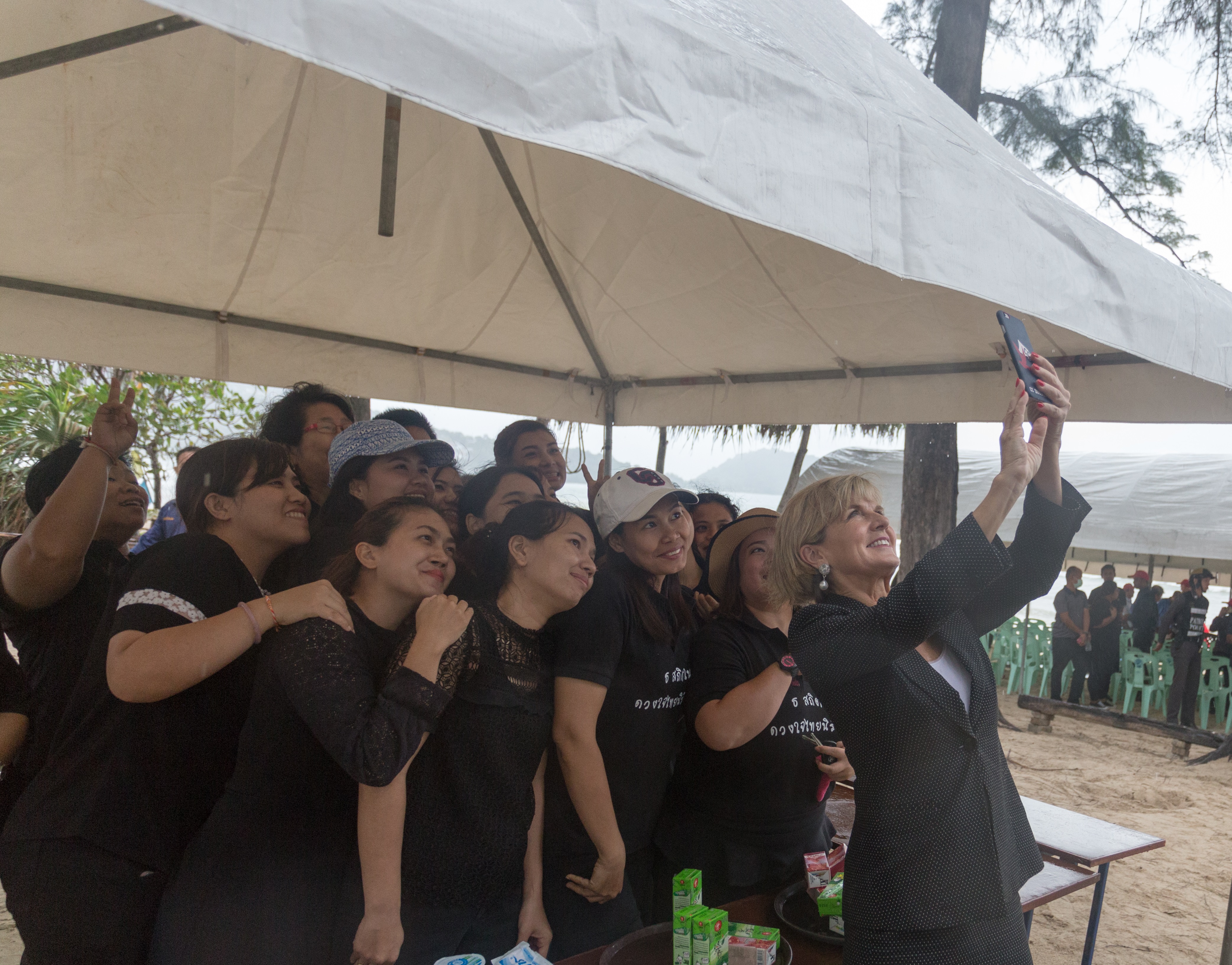 Foreign Minister Julie Bishop takes selfie with staff at Patong Geach in Phuket. Thailand, Phuket, 4 August 2017.
