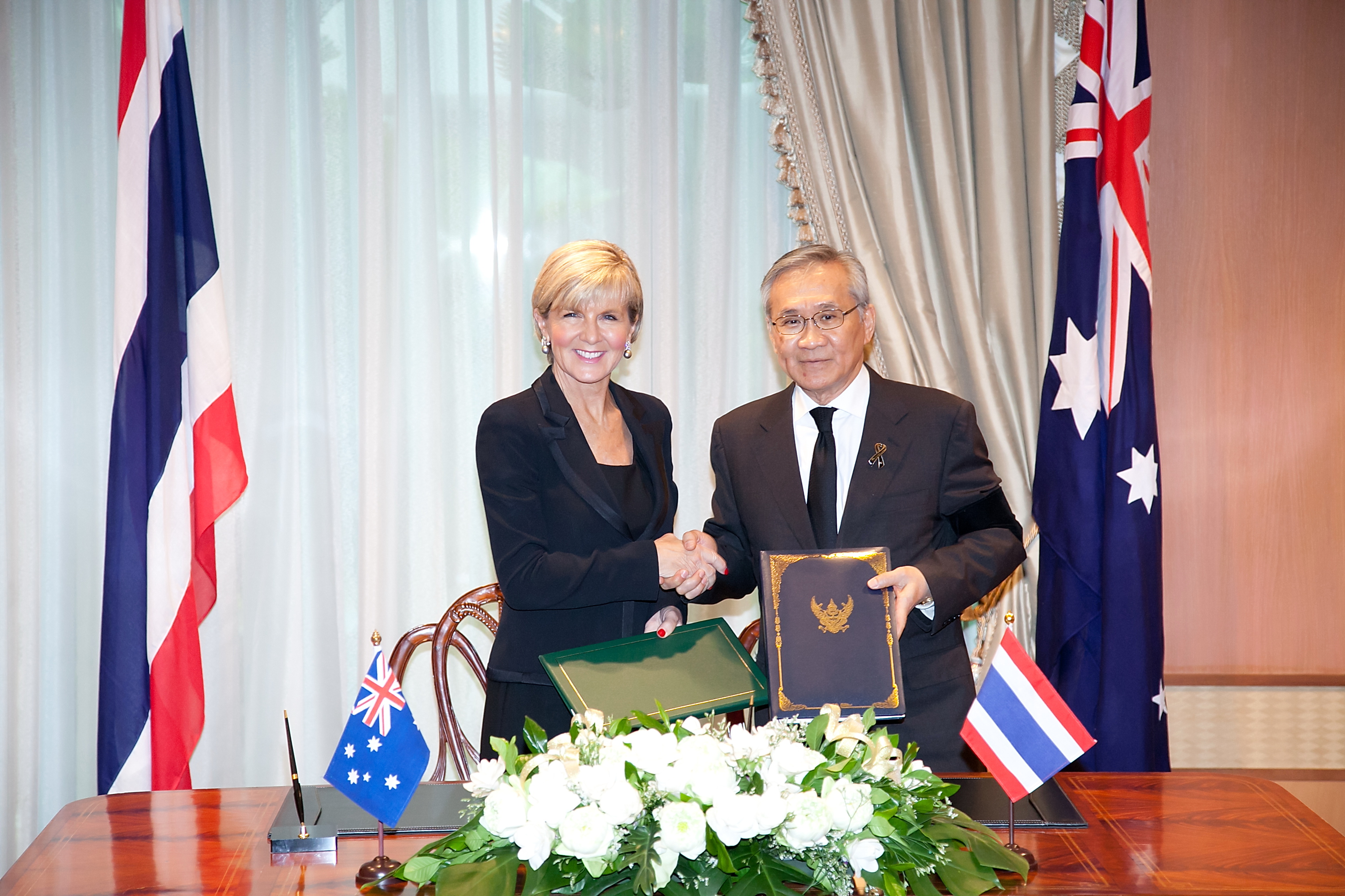 Foreign Minister Julie Bishop with Thai Minister of Foreign Affairs, His Excellency Mr Don Pramudwinai, signing a new Air Services Agreement between Australia and Thailand. Thailand, Bangkok, 3 August 2017.