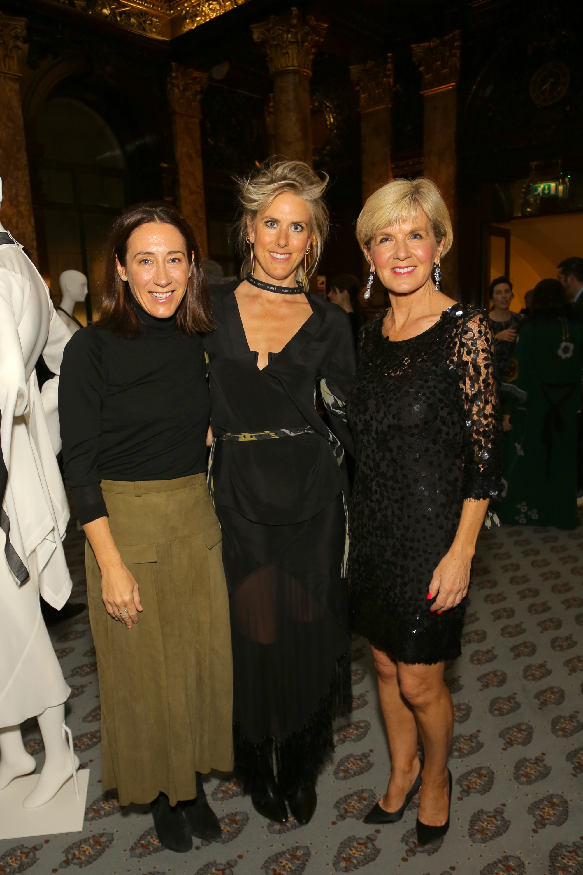 Minister for Foreign Affairs, the Hon Julie Bishop MP speaks with Kit Willow, designer of Kit-X and Edwina McCann, Editor-in-Chief Vogue Australia about sustainable and ethical fashion, and the value of fashion to the Australian economy. Photo credit: Australian Fashion Council.