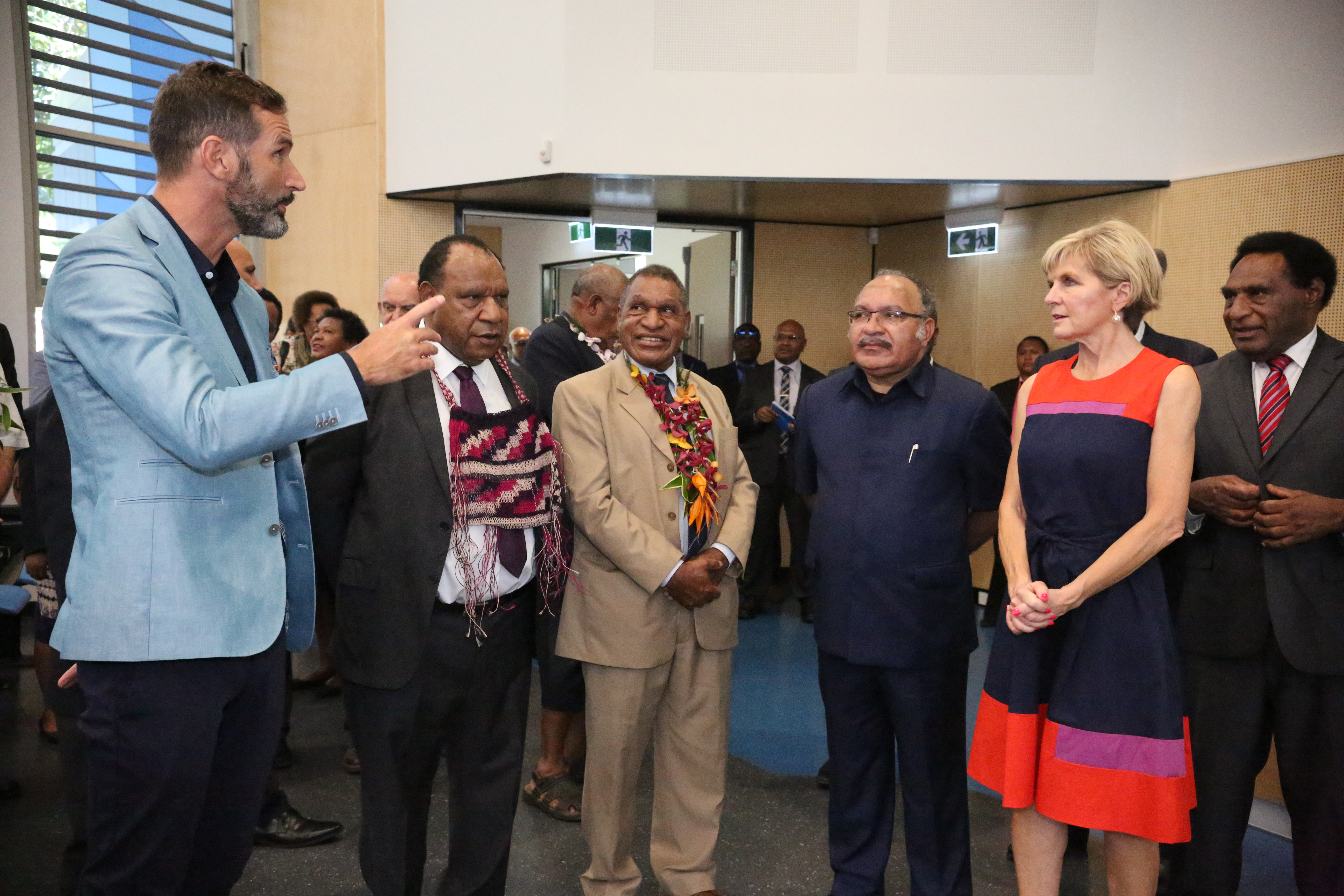 The Ministerial delegation are taken on a tour inside the new Lecture Theatre. Photo credit: DFAT