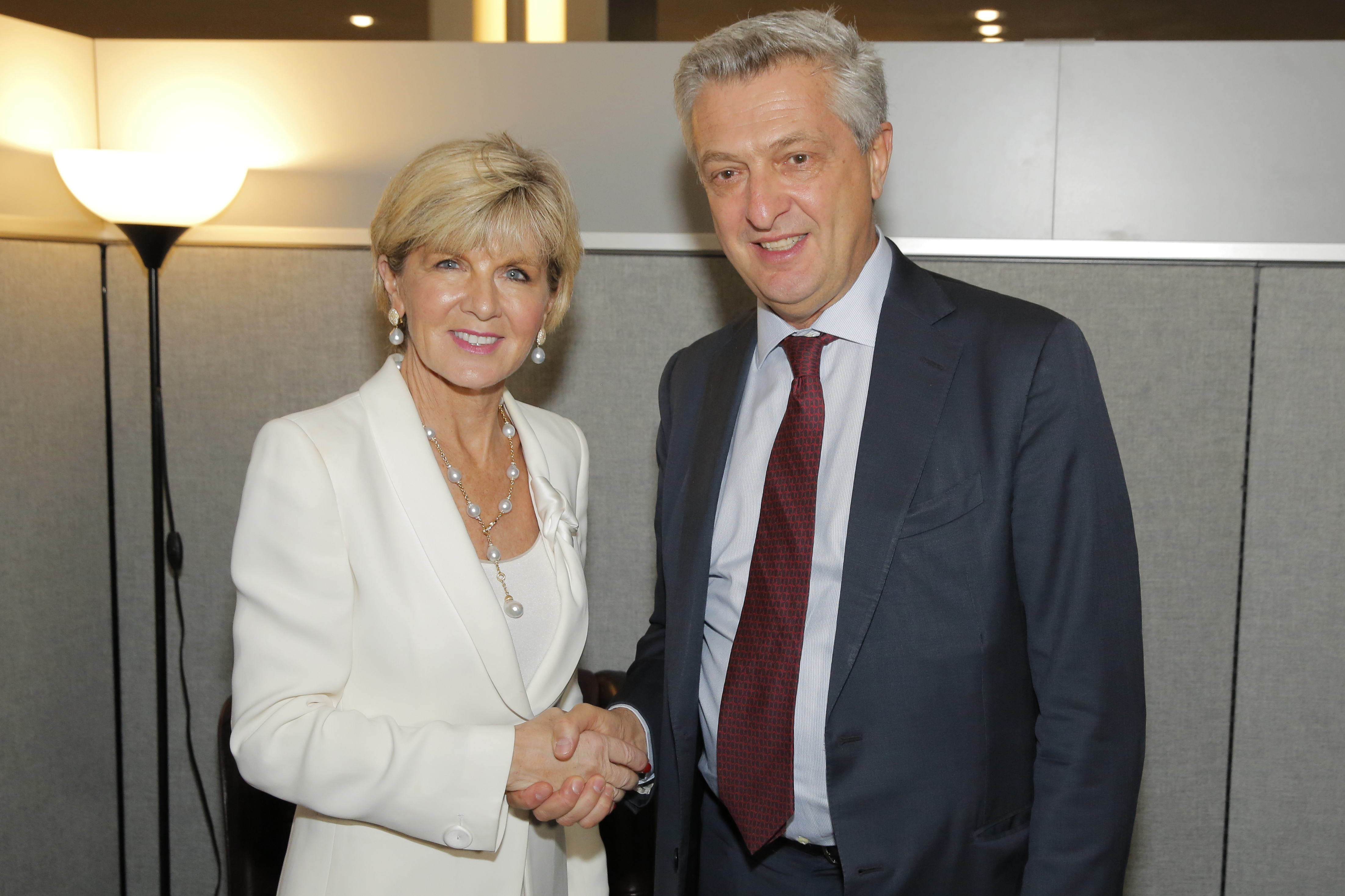 Foreign Minister Julie Bishop meets with United Nations High Commissioner for Refugees, Filippo Grandi, at UN Headquarters in New York on 19 September 2017.