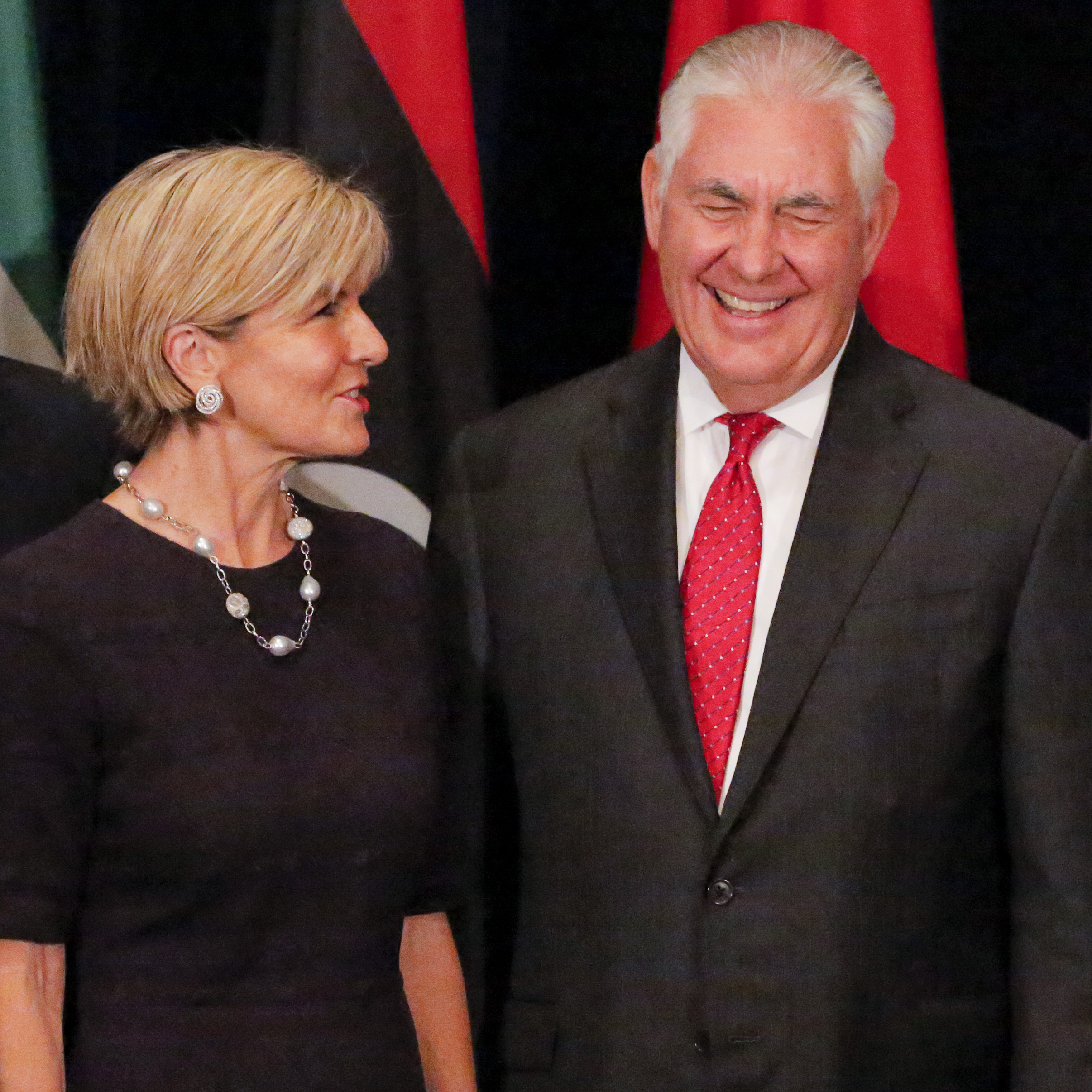 Foreign Minister Julie Bishop talks with United States Secretary of State, Rex Tillerson, at a meeting of foreign ministers of the Global Coalition to Defeat ISIS, on the margins of the United Nations General Assembly in New York on 22 September 2017.