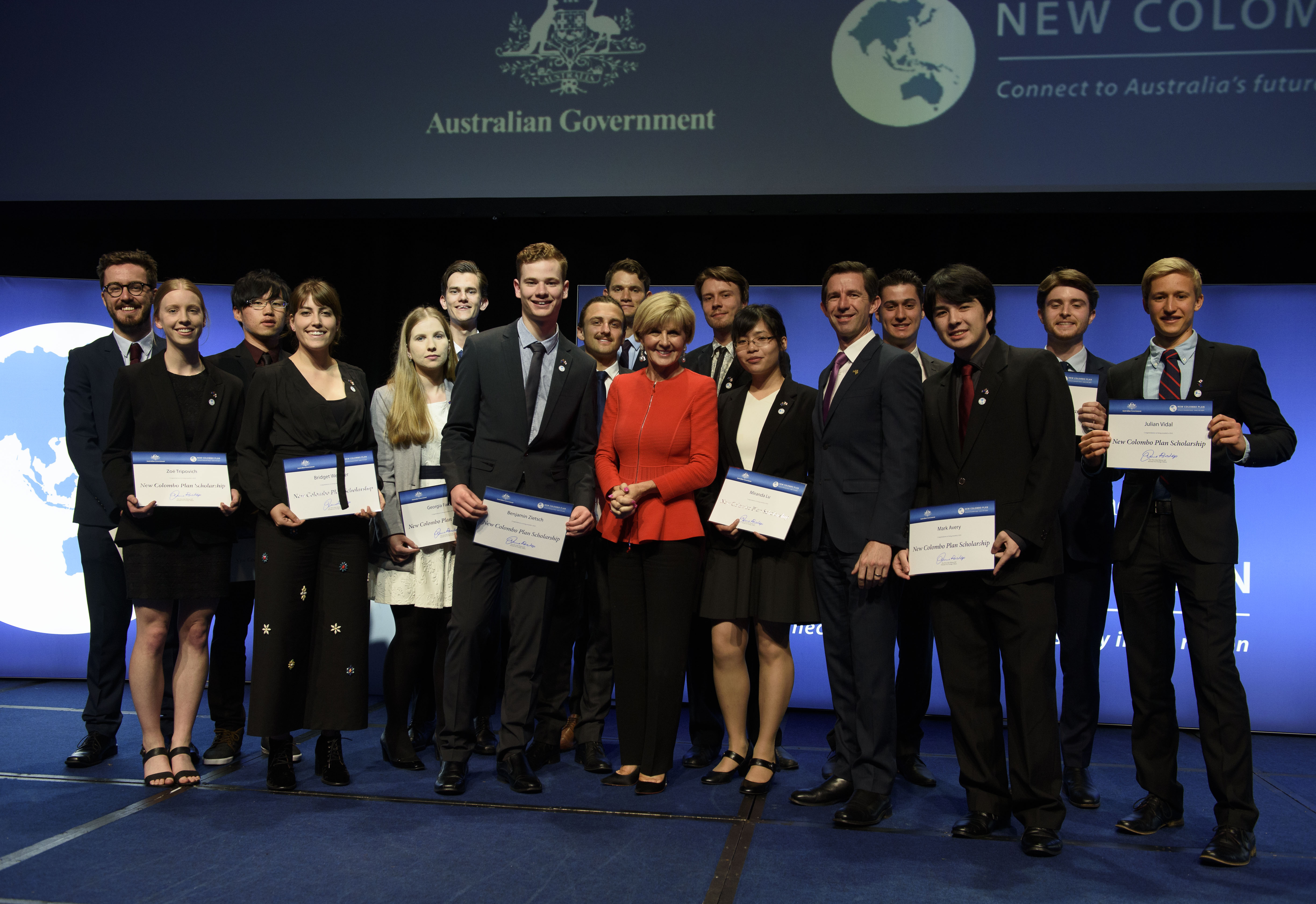 Foreign Minister Julie Bishop and Education Minister Simon Birmingham with the New Colombo Plan 2018 Japan Scholars.