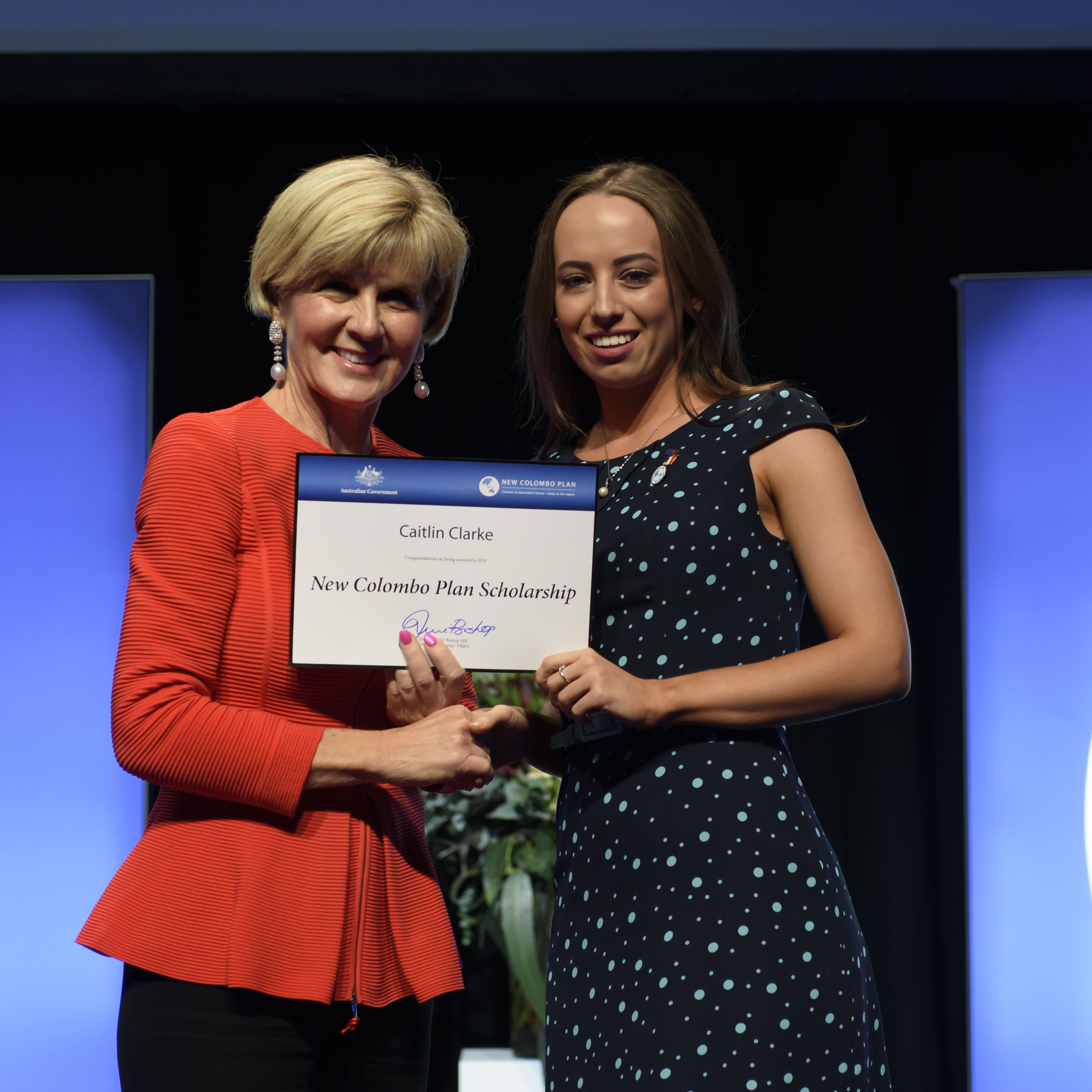 Foreign Minister Julie Bishop with Caitlin Clarke, 2018 Singapore Scholar, Queensland University of Technology