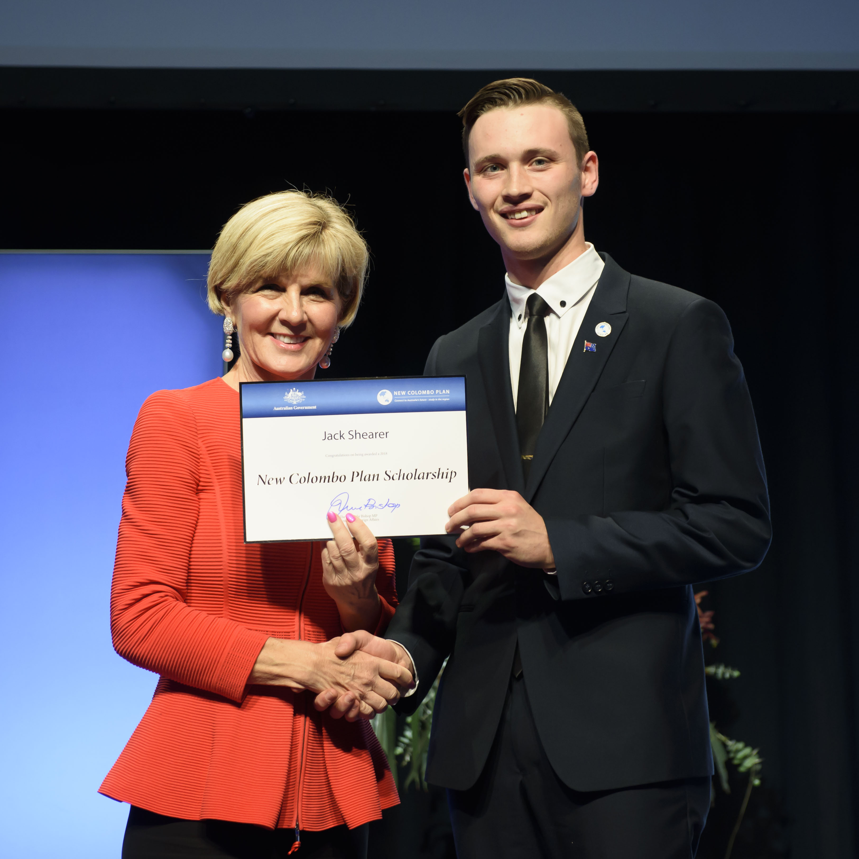 Foreign Minister Julie Bishop with Jack Shearer, 2018 Hong Kong Scholar, the University of Newcastle