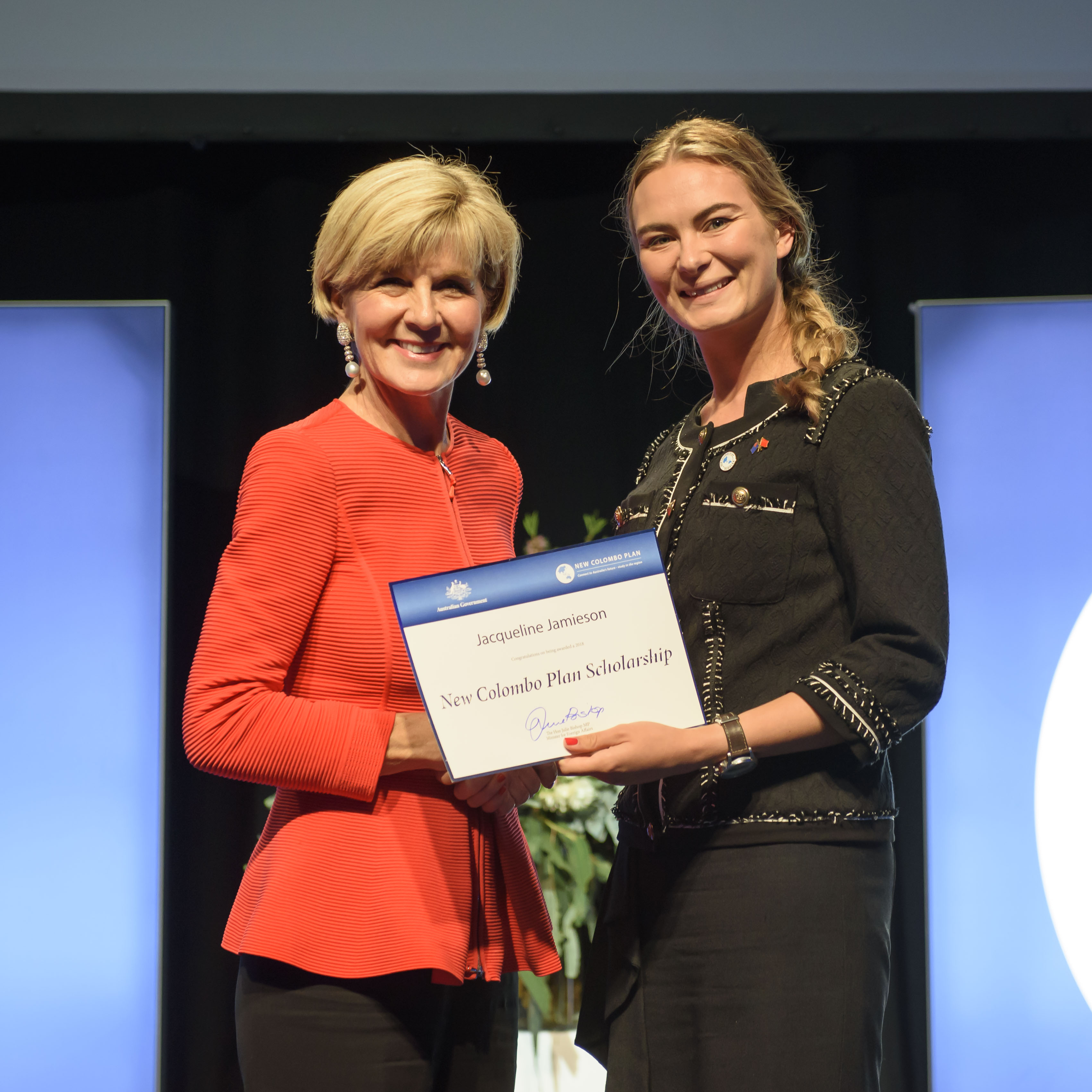 Foreign Minister Julie Bishop with Jacqueline Jamieson, 2018 China Scholar, University of Wollongong