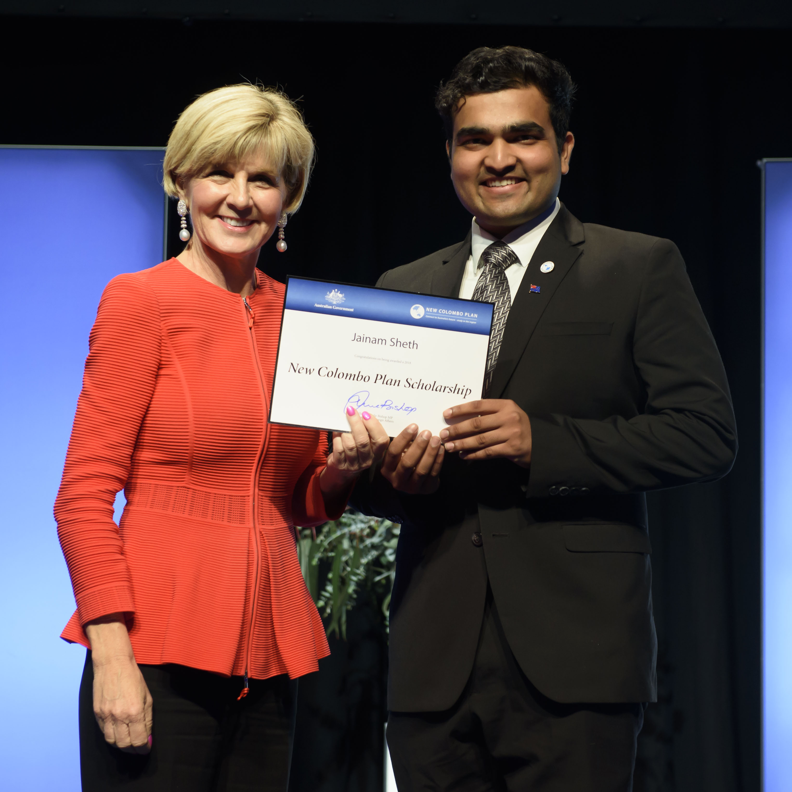 Foreign Minister Julie Bishop with Jainam Sheth, 2018 Hong Kong Scholar, Swinburne University of Technology