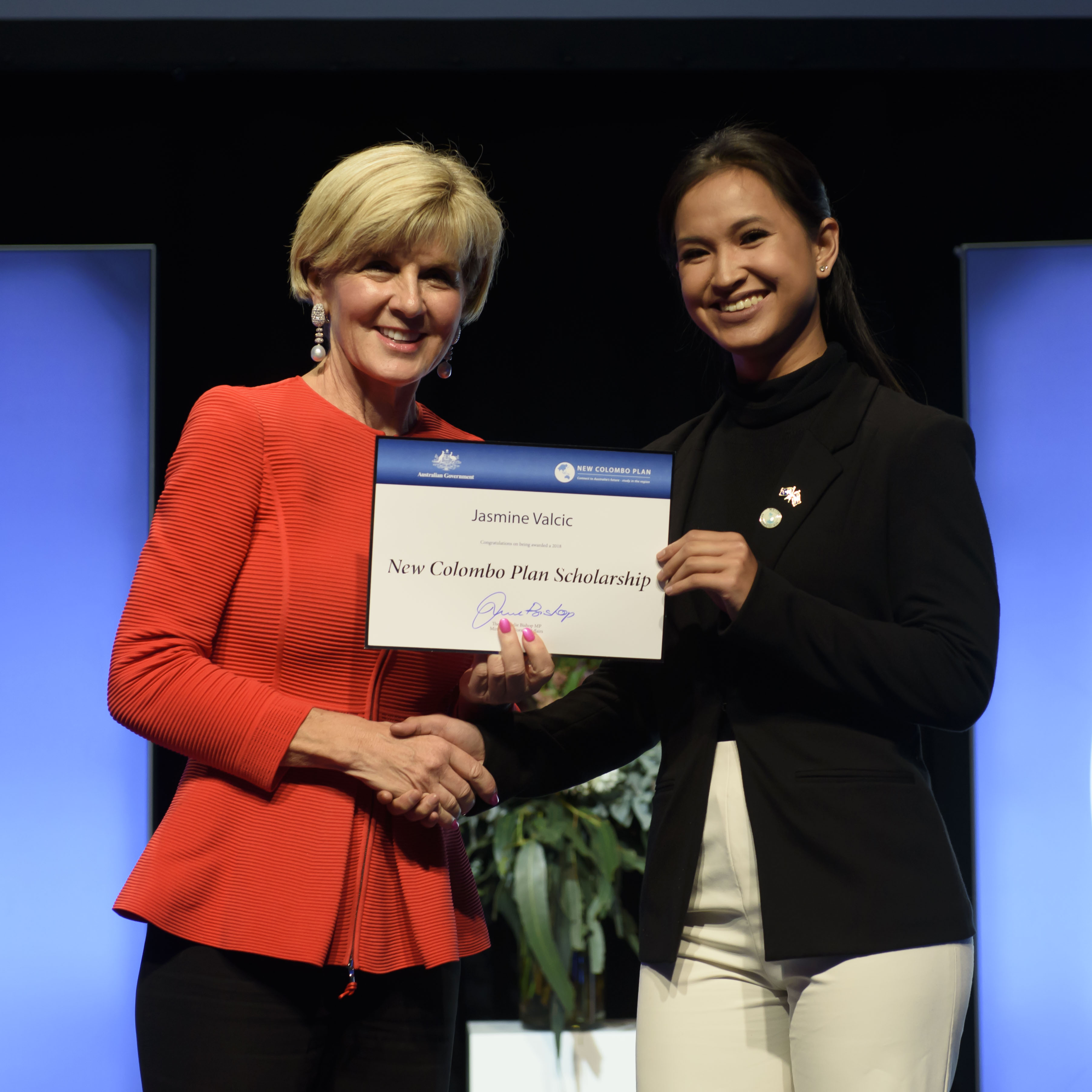 Foreign Minister Julie Bishop with Jasmine Valcic, 2018 Thailand Fellow, Bond University Limited