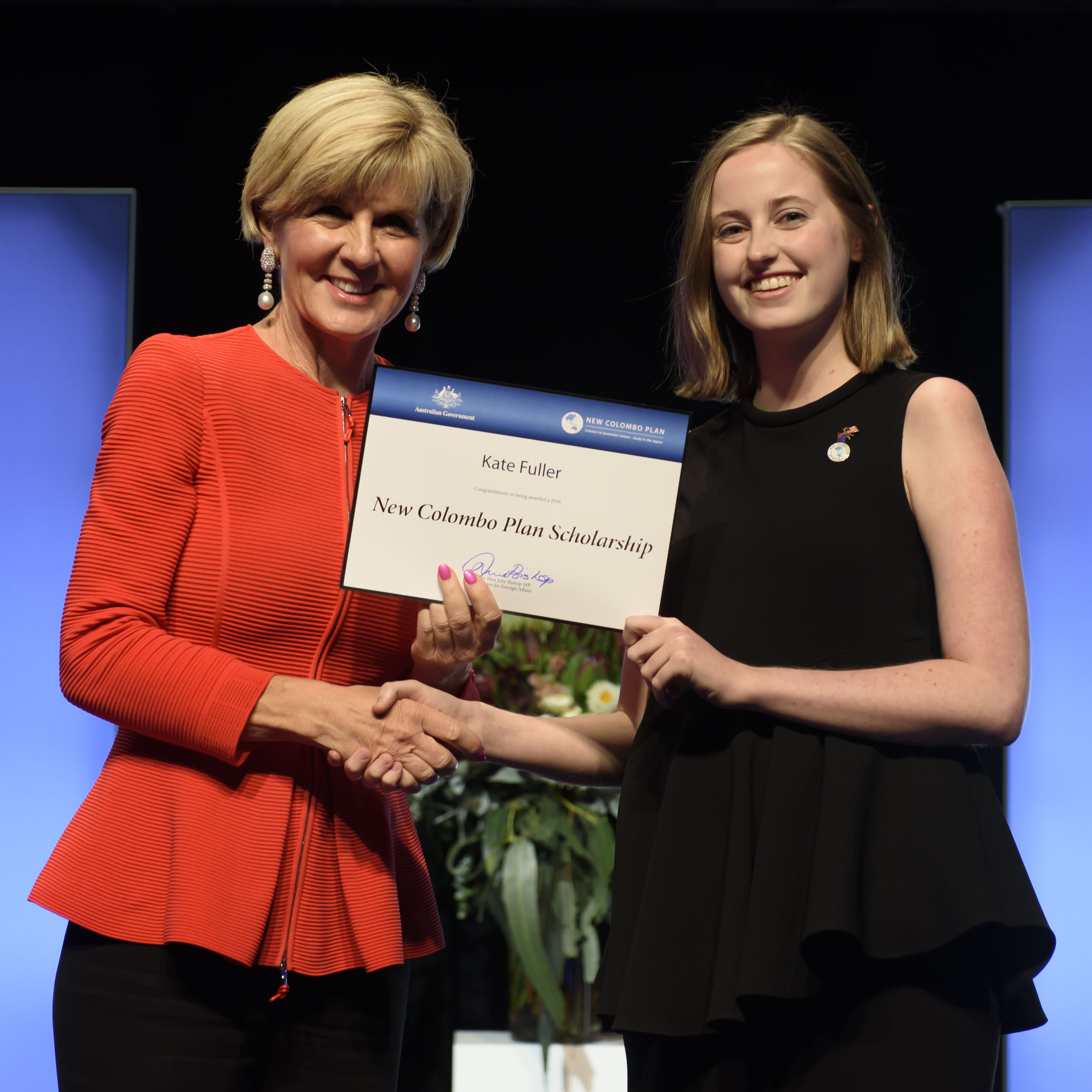 Foreign Minister Julie Bishop with Kate Fuller, 2018 Malaysia Scholar, University of Wollongong