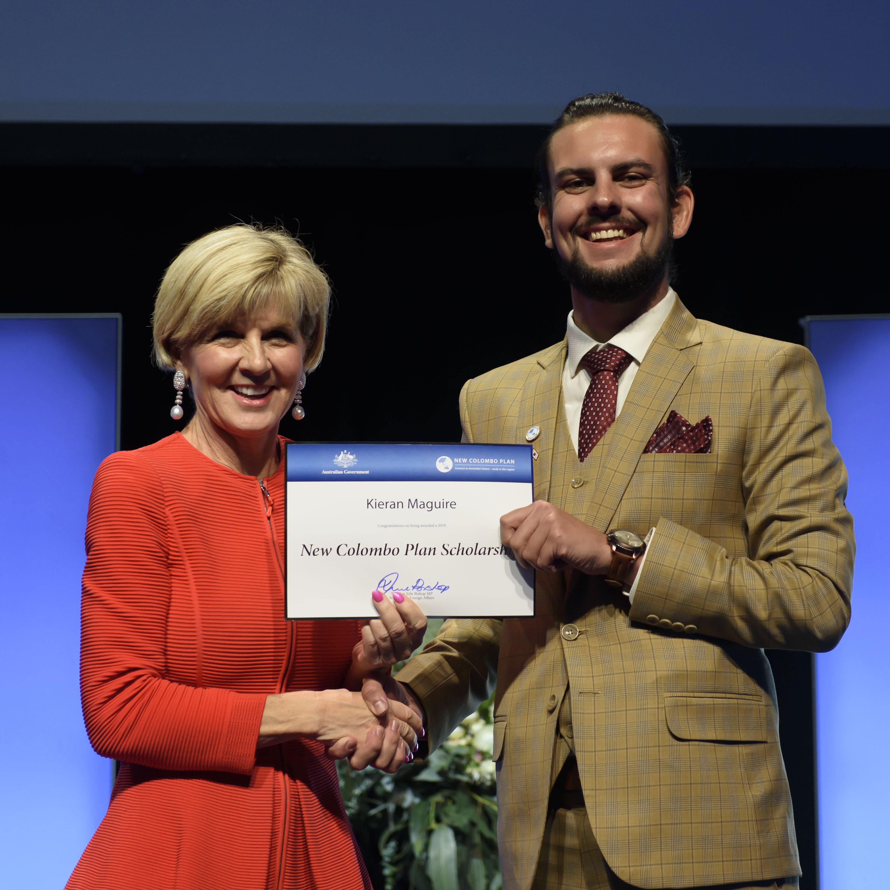 Foreign Minister Julie Bishop with Kieran Maguire, 2018 Republic of Korea Scholar, Deakin University