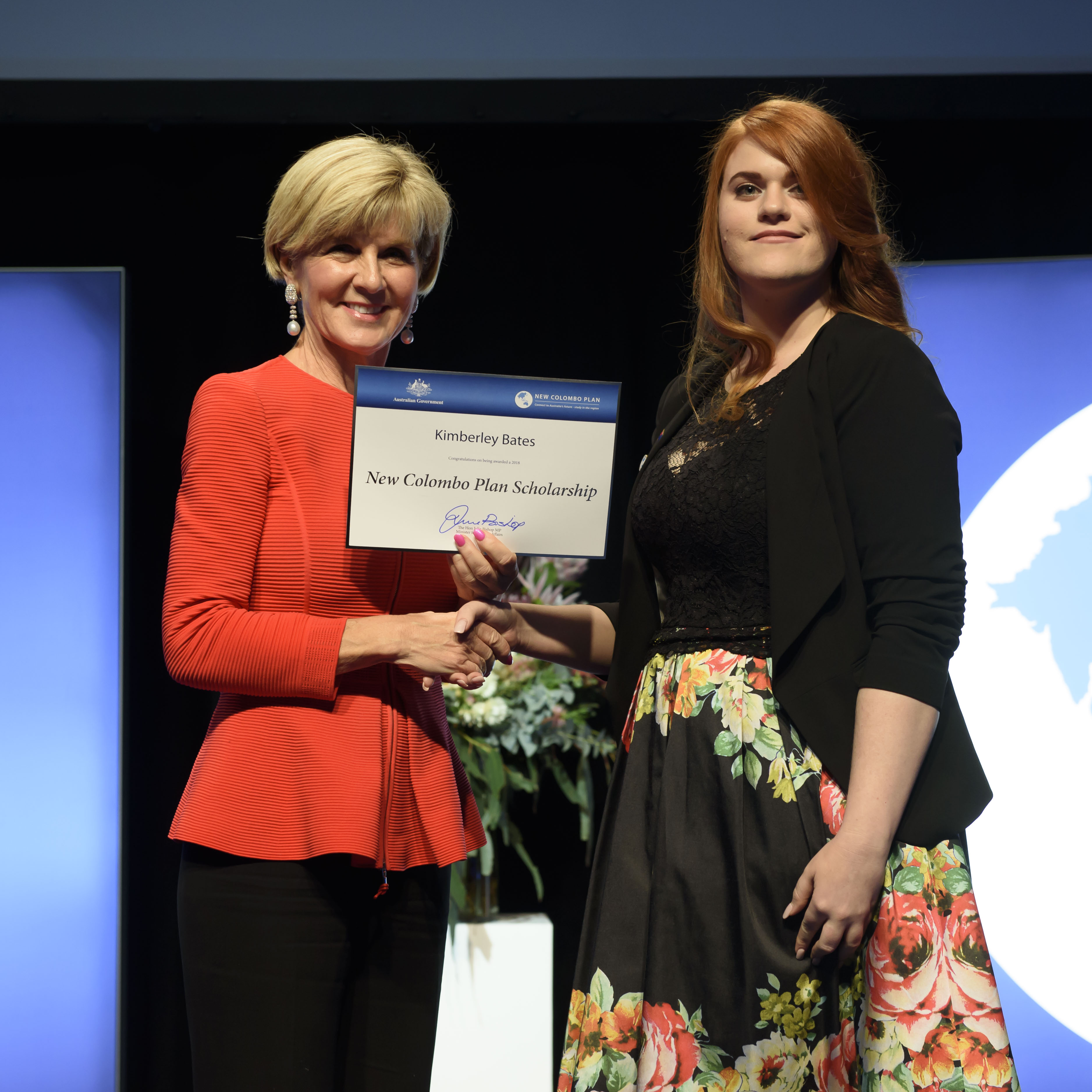 Foreign Minister Julie Bishop with Kimberley Bates, 2018 Hong Kong Scholar, Griffith University