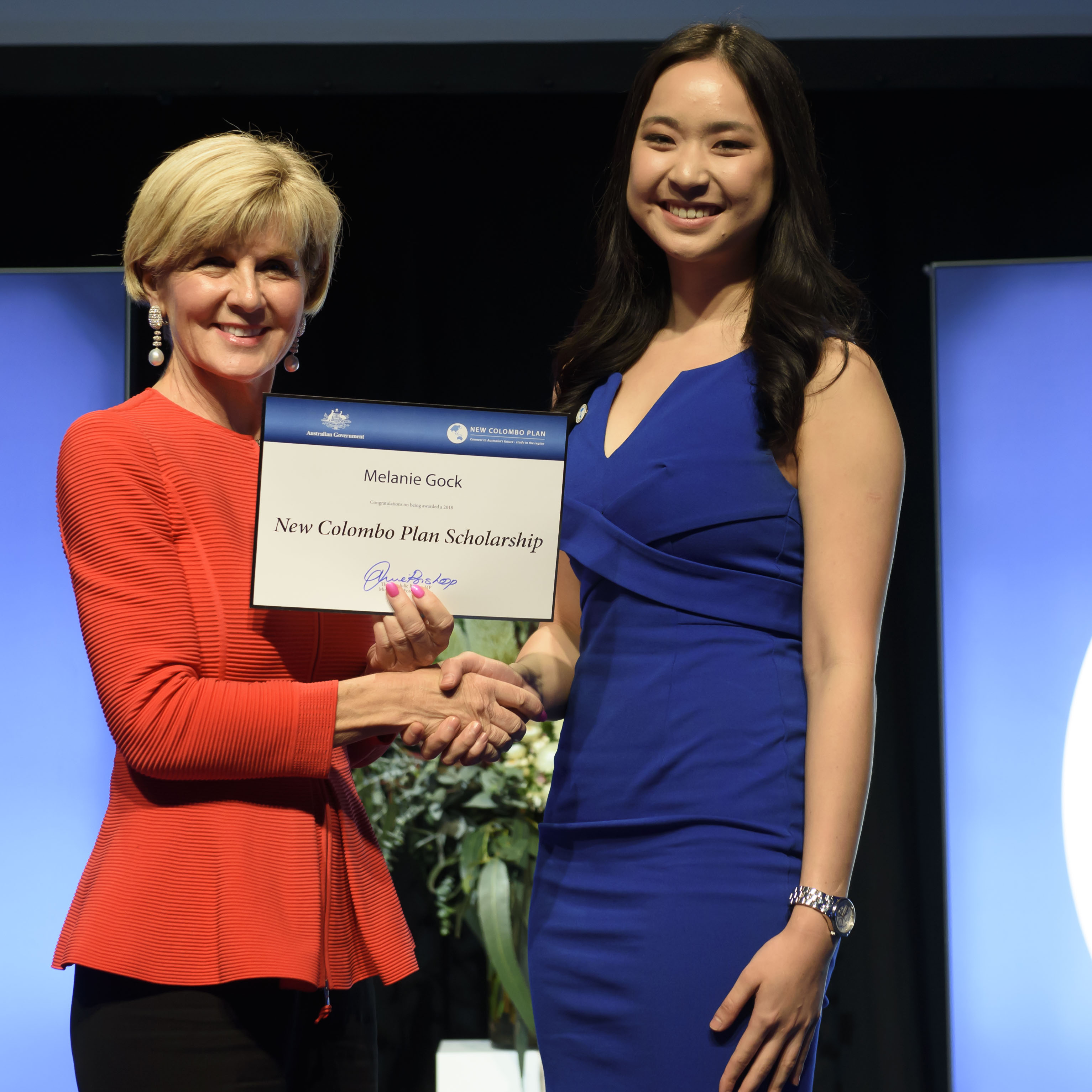 Foreign Minister Julie Bishop with Melanie Gock, 2018 Hong Kong Scholar, Queensland University of Technology