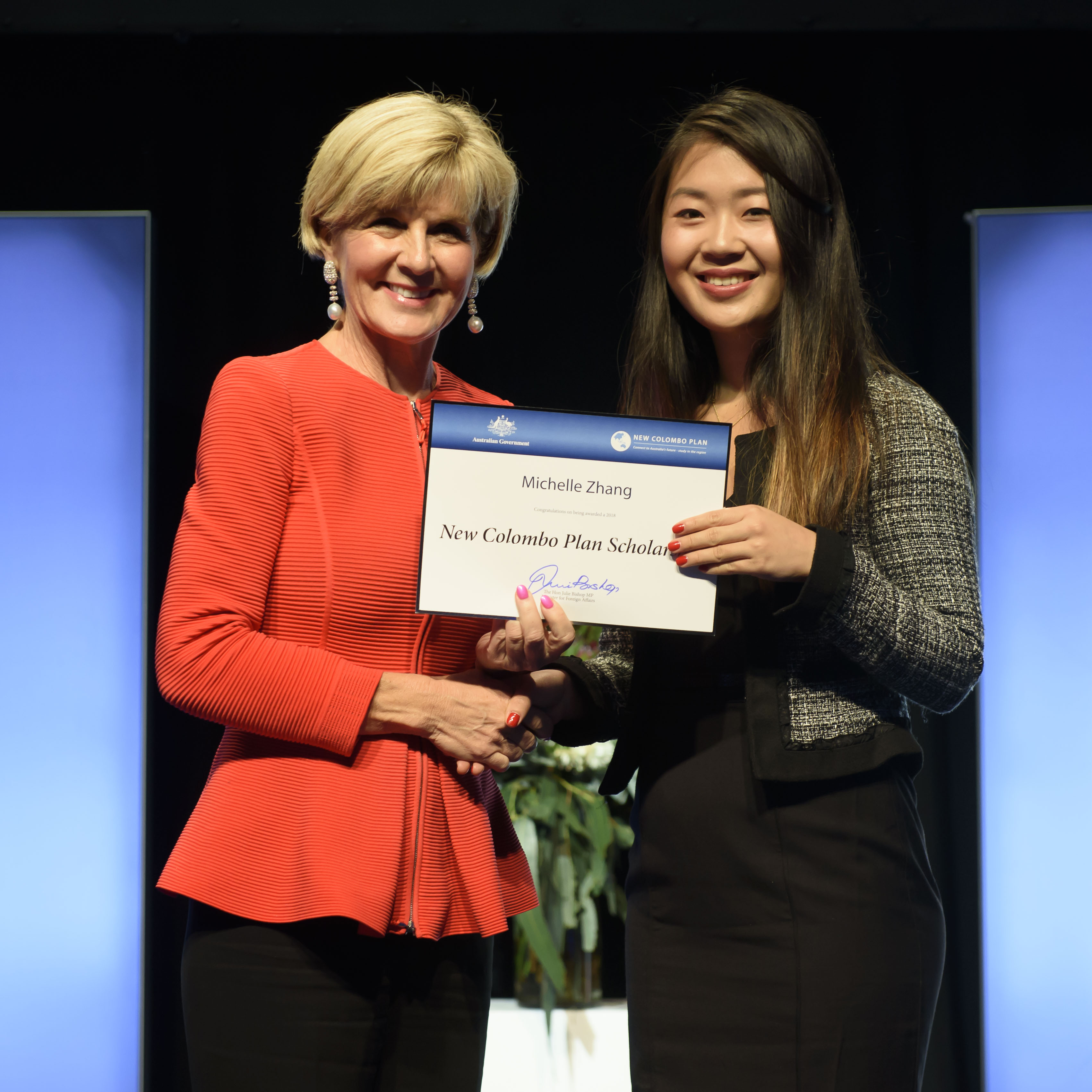 Foreign Minister Julie Bishop with Michelle Zhang, 2018 China Scholar, University of Technology Sydney