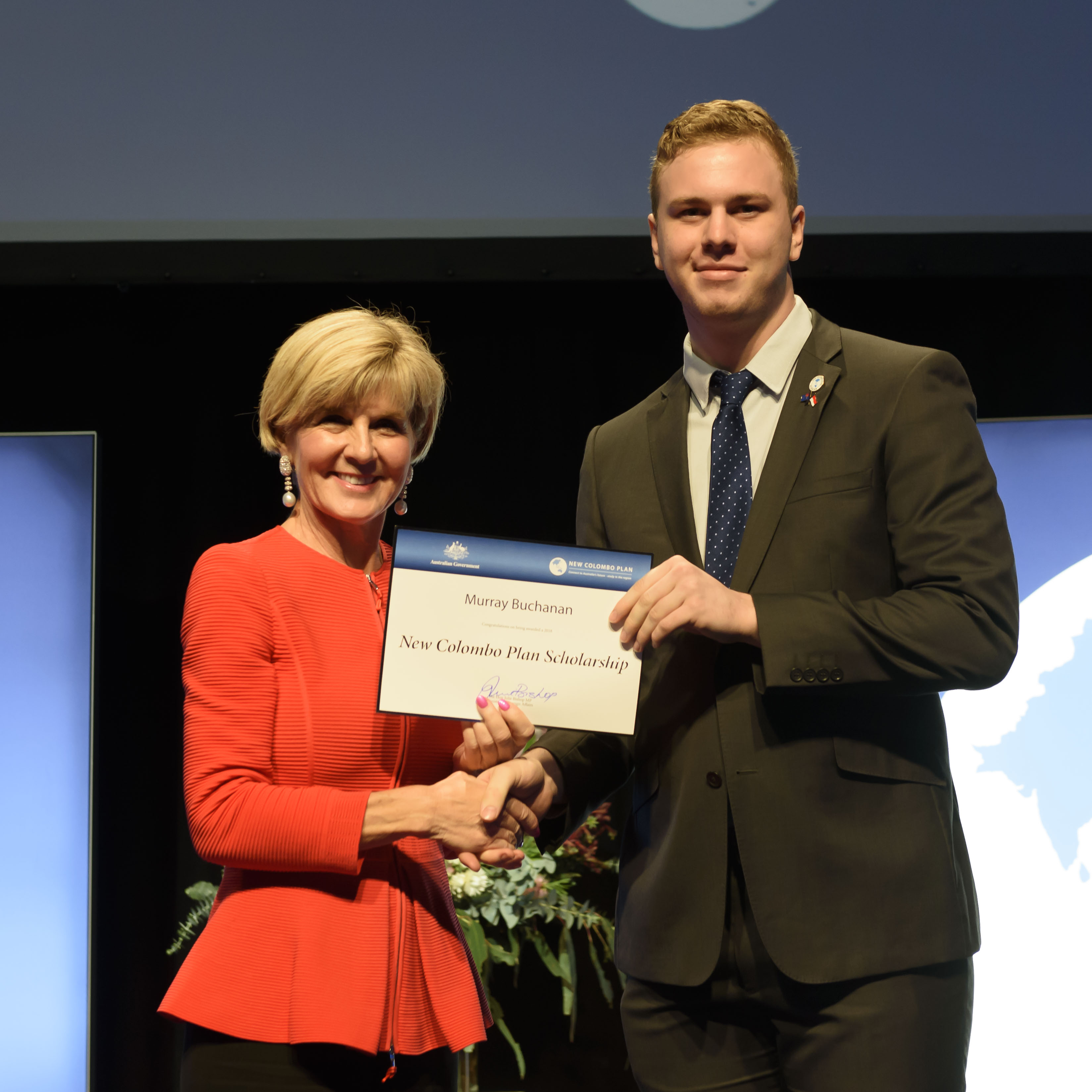 Foreign Minister Julie Bishop with Murray Buchanan, 2018 Indonesia Scholar, the University of Queensland