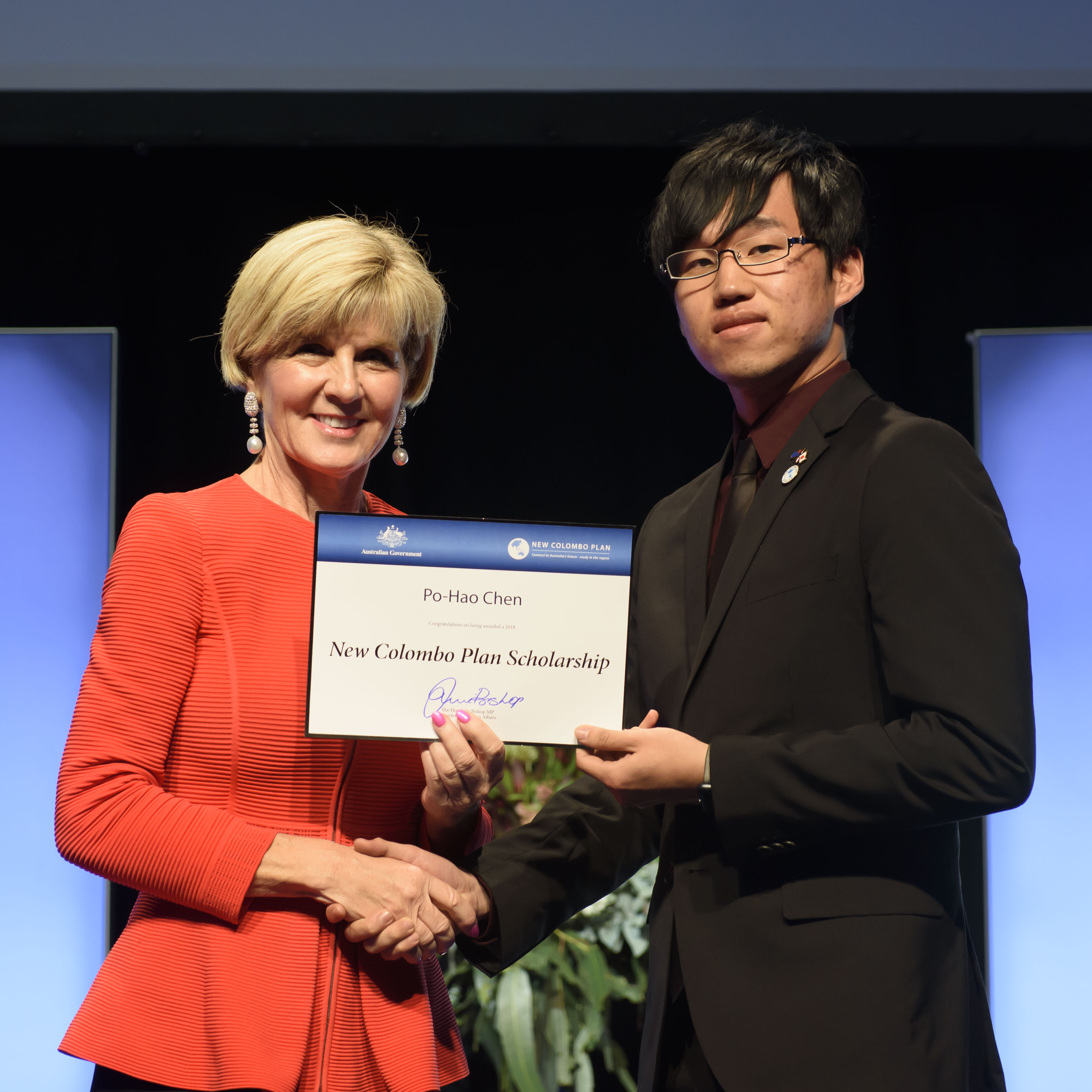 Foreign Minister Julie Bishop with Po-Hao Chen, 2018 Japan Scholar, University of Technology Sydney