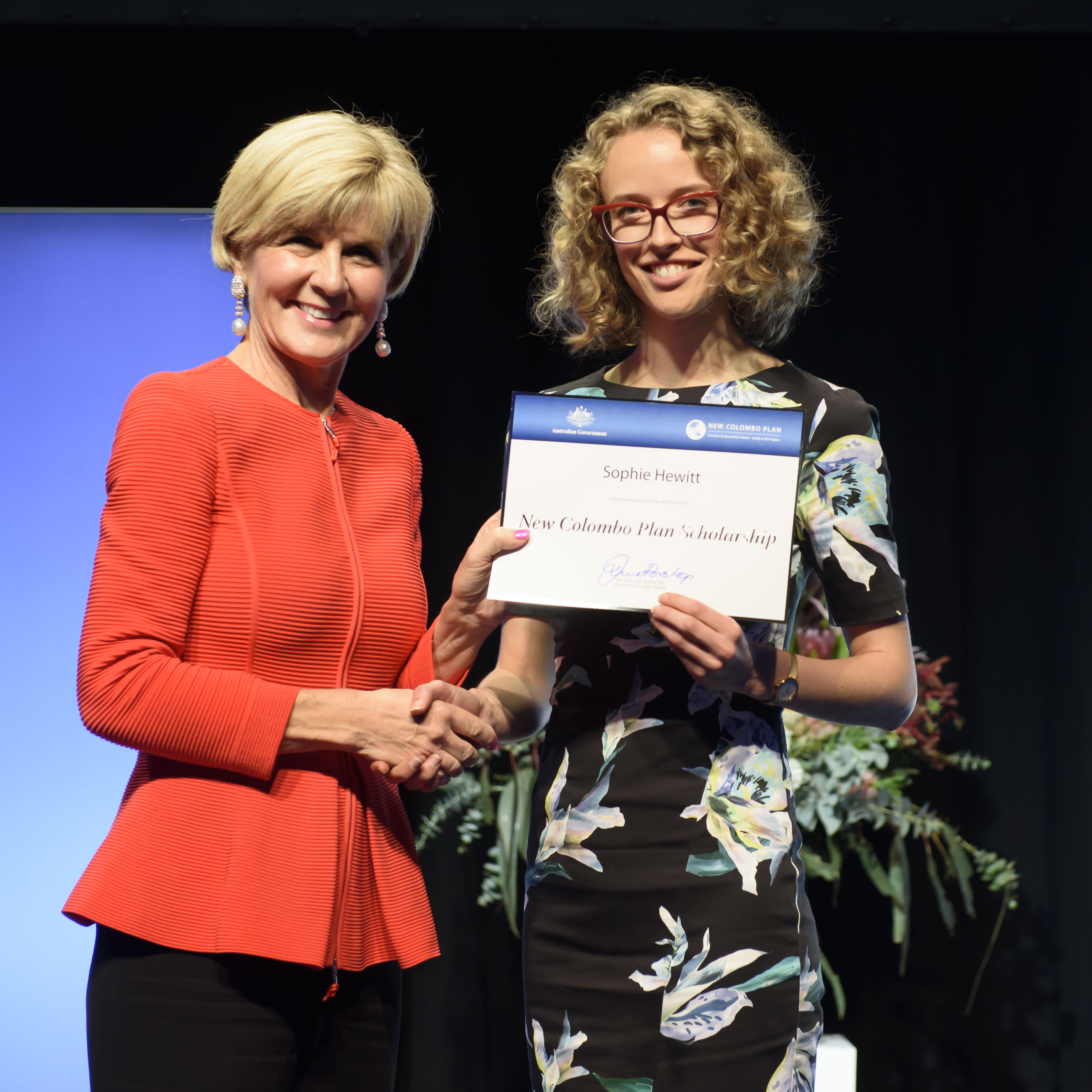 Foreign Minister Julie Bishop with Sophie Hewitt, 2018 Indonesia Scholar, Australian National University